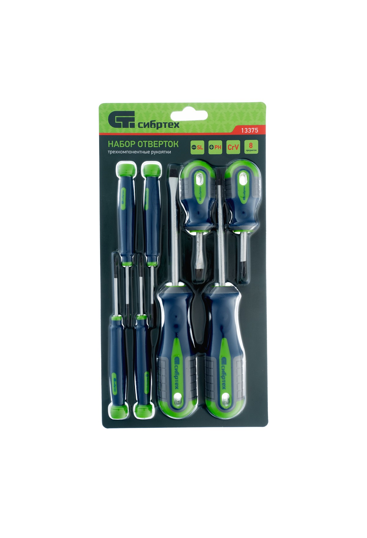 Набор отверток универсальный, CrV, трехкомпонентные рукоятки, 8 предметов Сибртех
