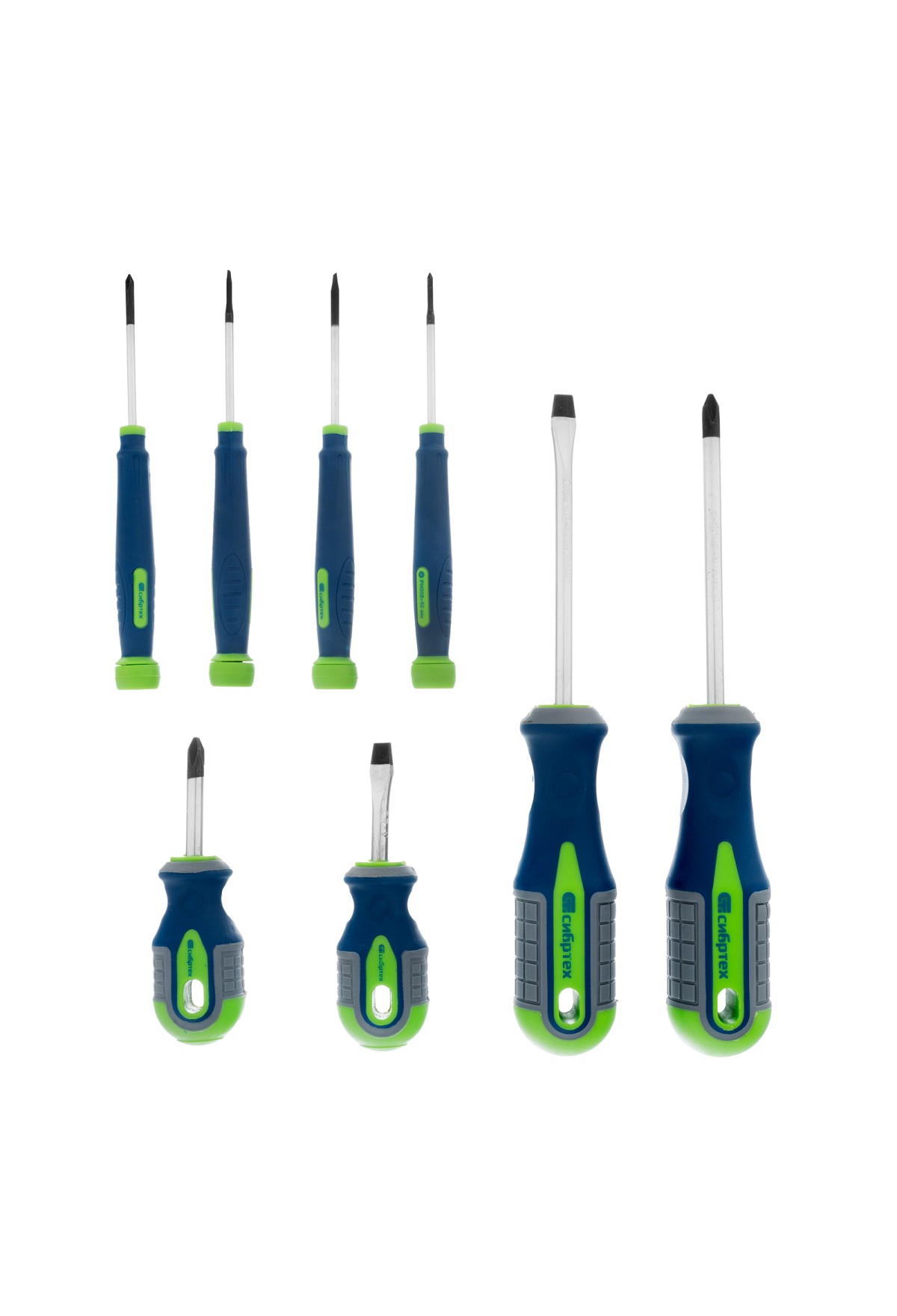 | Комплектация | Отвертки: PH2 x 100 мм, SL6 x 100 мм, SL6 x 38 мм, PH2 x 38 мм - 4 штОтвертки для точных работ: PH0 x 40 мм, PH000 x 40 мм, SL30 x 40 мм, SL20 x 40 мм - 4 шт |