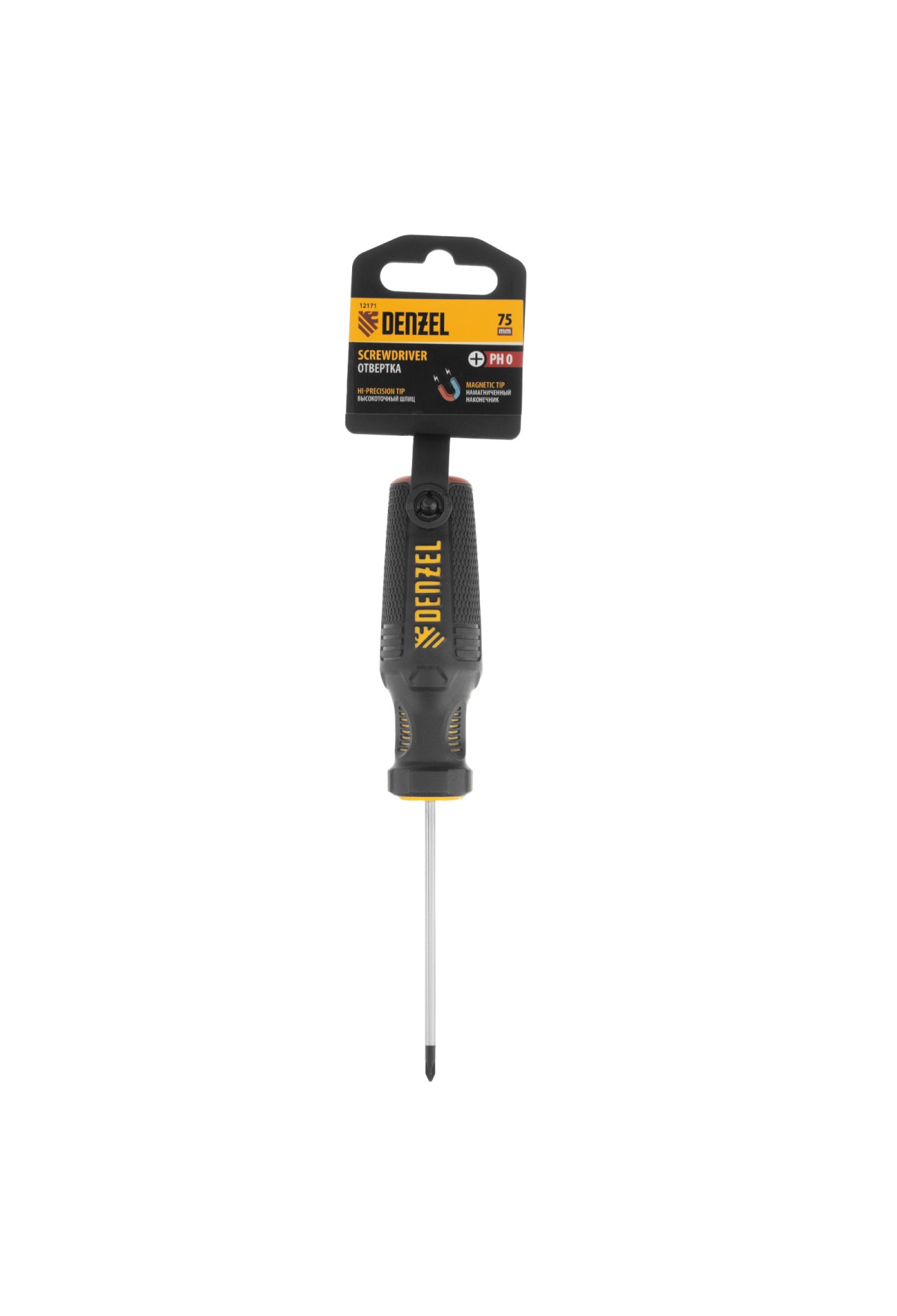 Нет в наличии Код товара: VR6-12172 Отвертка PH0х100 мм, CrV, трехкомпонентная рукоятка Denzel