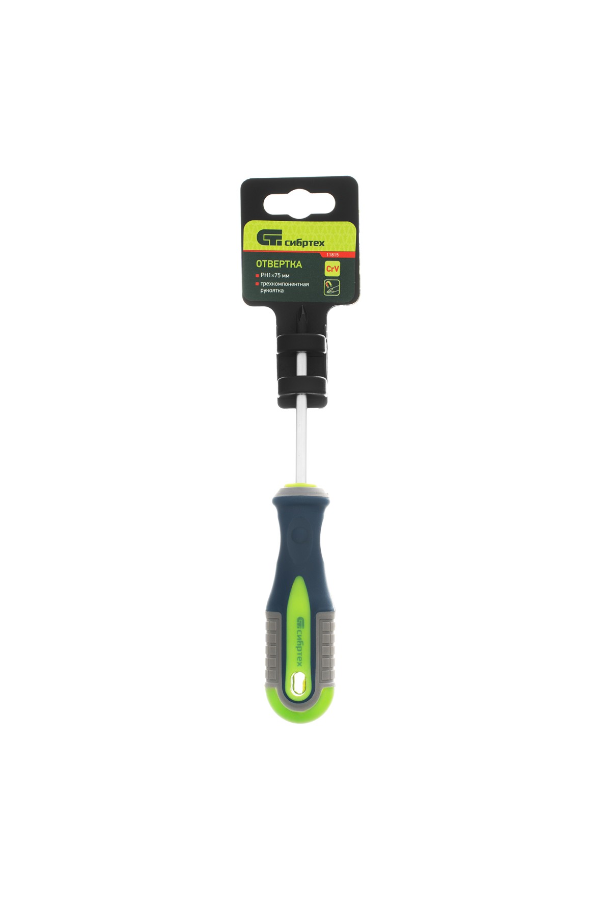 Технические характеристики Отвертка, PH1 х 75 мм, CrV, трехкомпонентная рукоятка Сибртех
