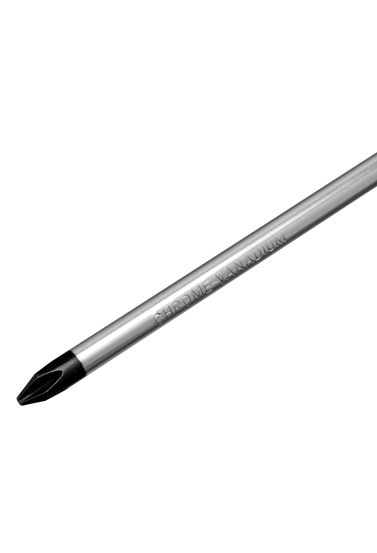 - Стержень отвертки обладает высокой прочностью и износостойкостью, т.к. изготовлен из хромованадиевой стали и закален до твердости 50-54 HRC.