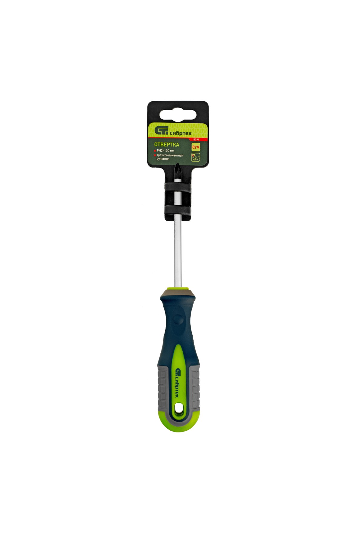 Отвертка, PH2 х 100 мм, CrV, трехкомпонентная рукоятка Сибртех