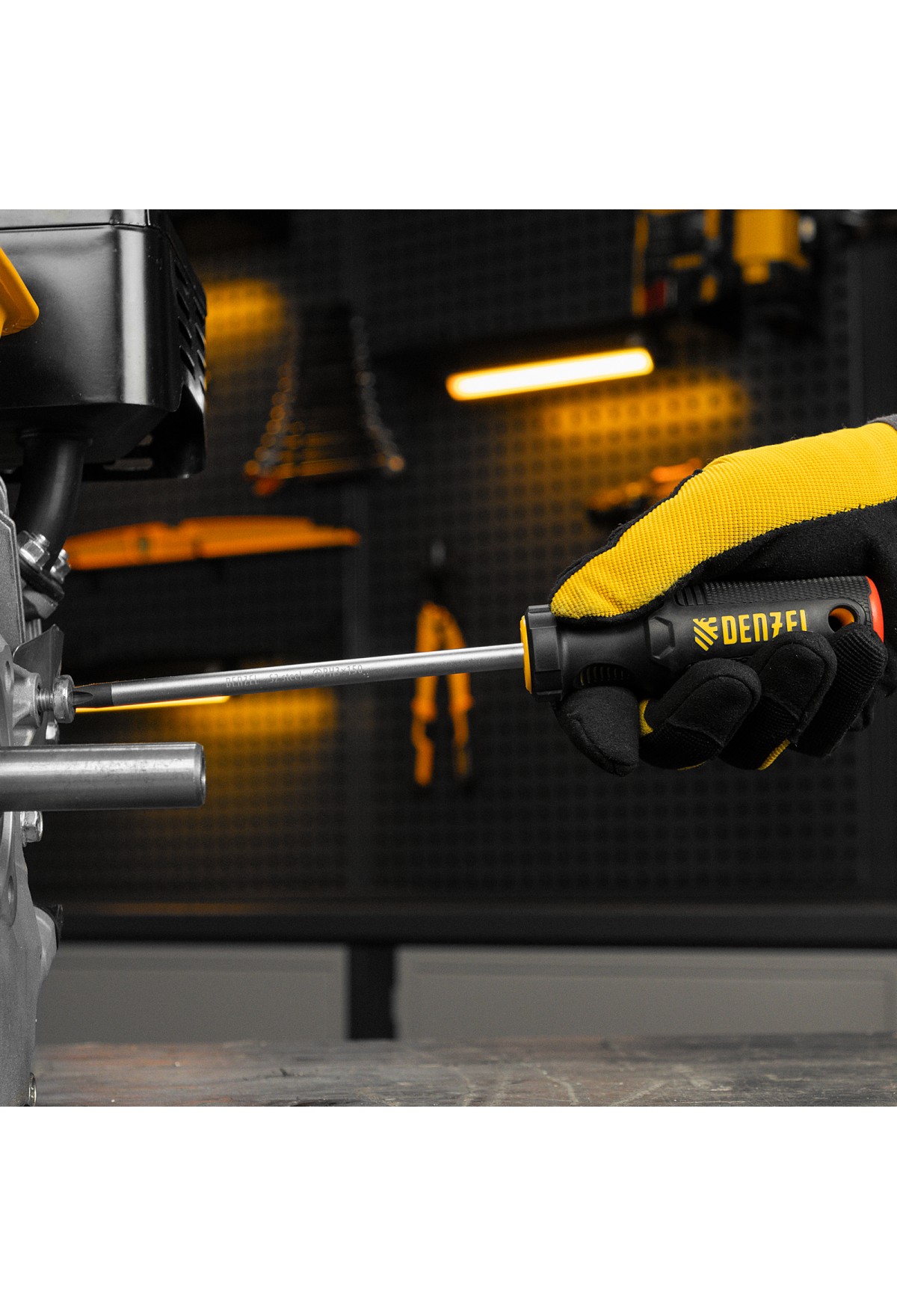 Отвертка Denzel 121847 с трехкомпонентной рукояткой, со стержнем из стали S2, длиной 150 мм, предназначена для закручивания и откручивания резьбового крепежа типа PH3. Высокоточный намагниченный шлиц избавляет мастера от необходимости придерживать винт или саморез рукой. Отвертка рекомендована для профессионального использования.