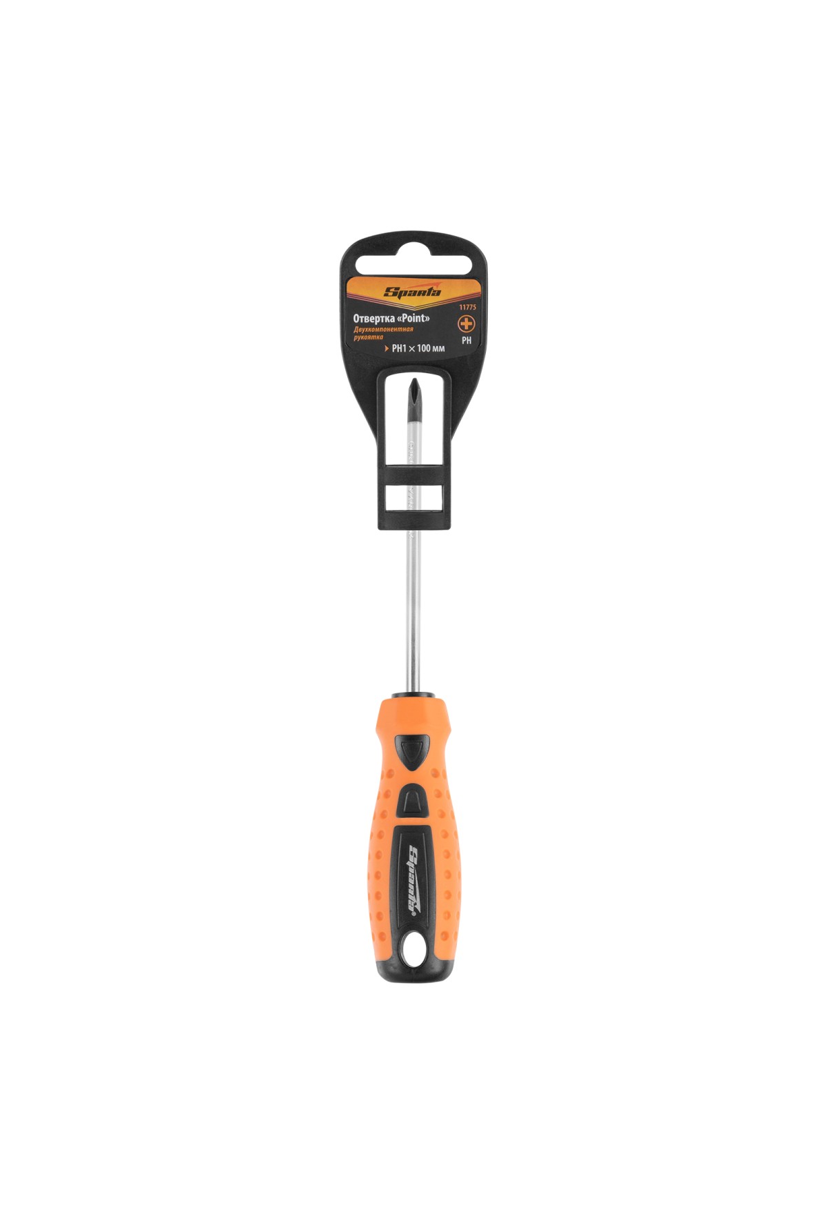 Отвертка "Point", PH1 х 100 мм, CrV, двухкомпонентная рукоятка Sparta