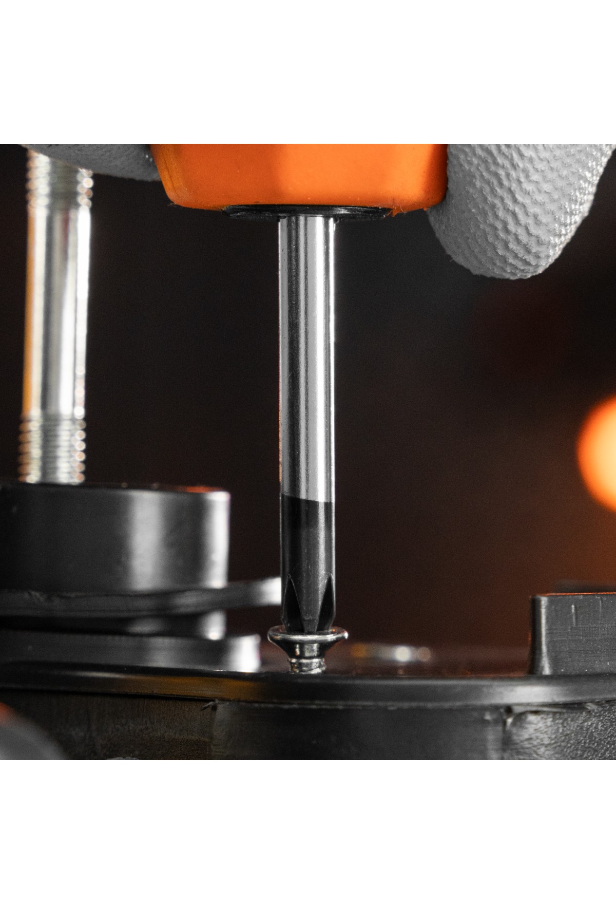 - Двухкомпонентная эргономичная рукоятка — увеличенная передача крутящего момента позволяет добиться снижения нагрузки на запястье.
