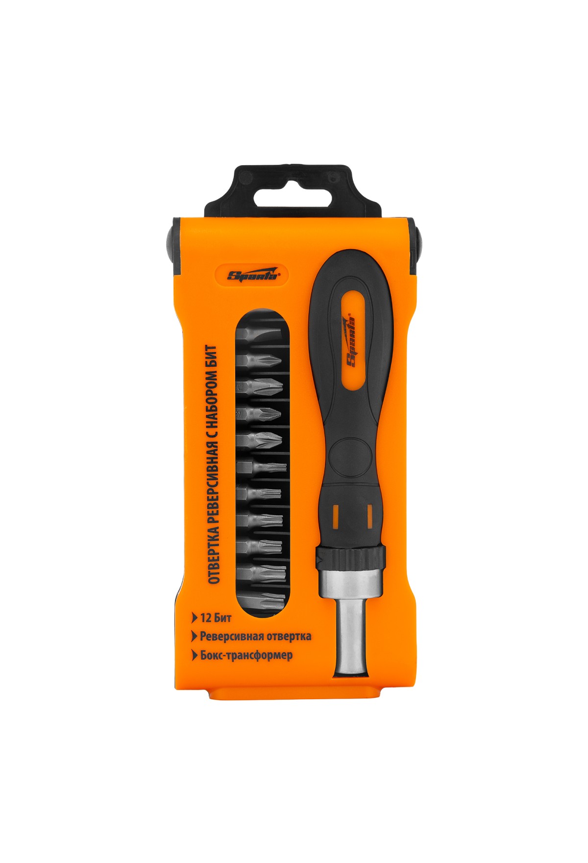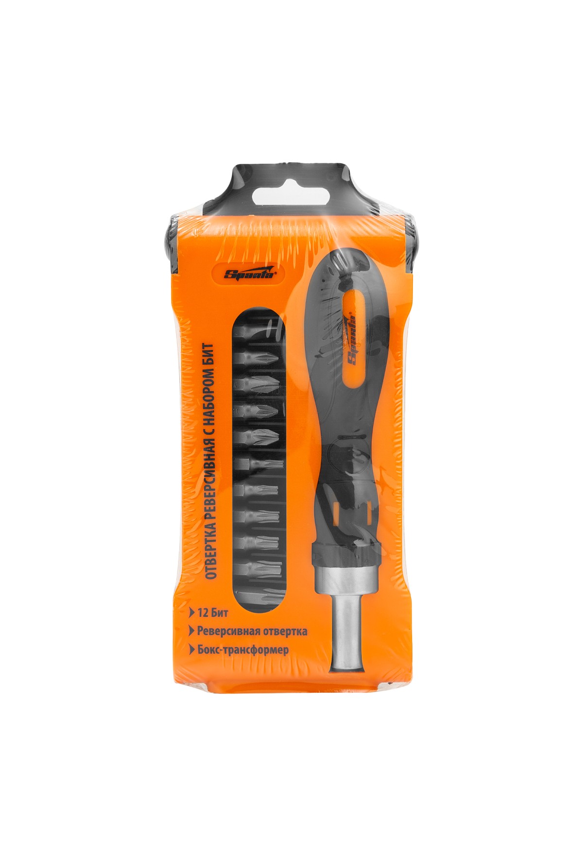 Отвертка реверсивная с набором бит, CrV, 12 шт, Sparta