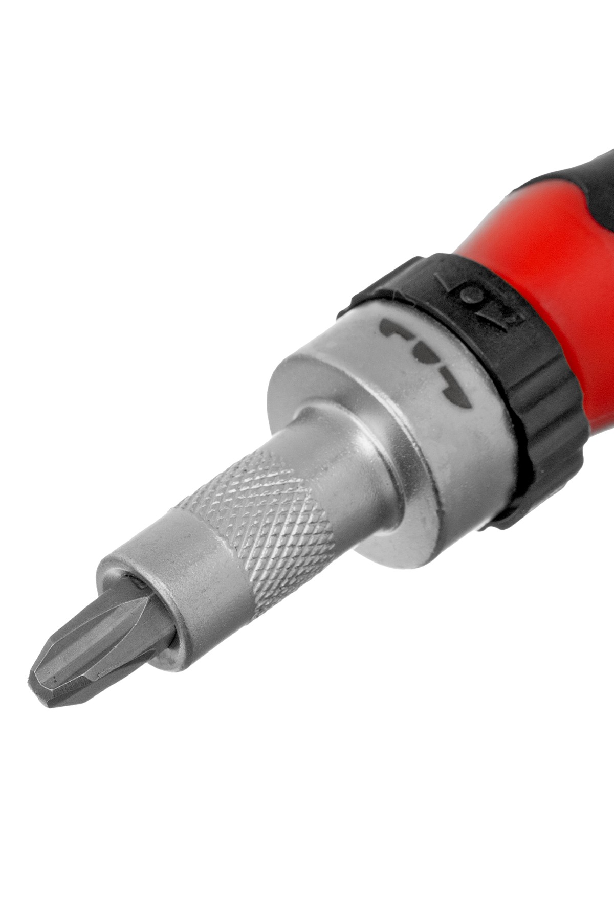 | Комплектация | Отвертка реверсивная - 1 штБиты 25 мм: РН1, РН2, РН3, PZ1, PZ2, PZ3, SL4, SL5, SL6 мм - 9 штАдаптер для торцевых головок 1/4" - 1 штТорцевые головки 1/4": 5, 6, 10, 11 мм - 4 шт |