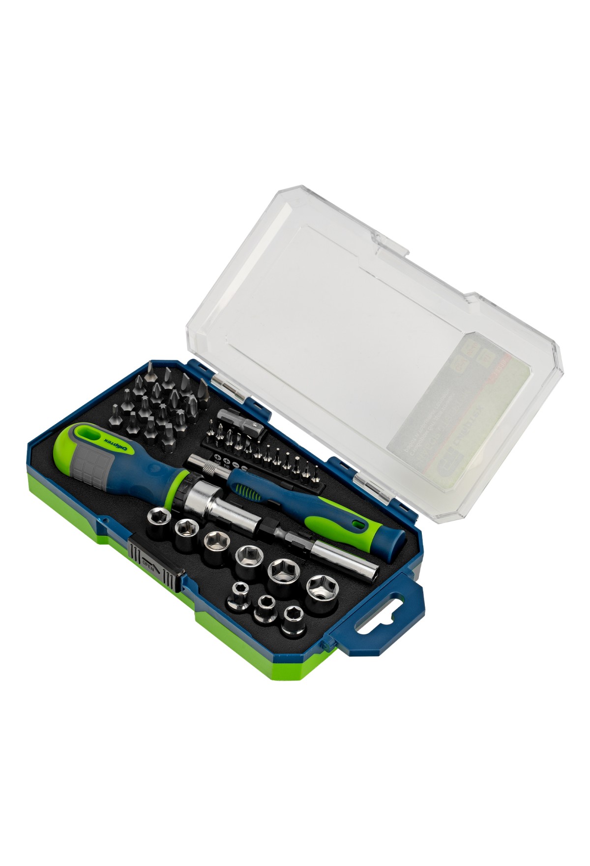 | Комплектация | Пластиковый кейс - 1 штОтвертка реверсивная для бит 1/4" - 1 штОтвертка для точных работ - 1 штУдлинитель 1/4" - 1 штПереходник для торцевых головок 1/4" - 1 штТорцевые головки: 4, 5, 6, 7, 8, 9, 10, 11, 12 мм - 9 штБиты 1/4": SL3, SL4, SL5, SL6 - 4 штБиты 1/4": PH0, PH1, PH2, PH3 - 4 штБиты 1/4": Т10, Т15, Т20, Т25 - 4 штБиты 1/4": S0, S1, S2, S3 - 4 штБиты для точных работ: SL2, SL3, Т5, Т6 - 4 штБиты для точных работ: PH000, PH00, PH0 - 3 штБиты для точных работ: Pb 0.8, 1.2 - 2 штБиты для точных работ: H1.3, Н1.5, Н2.0 - 3 шт |