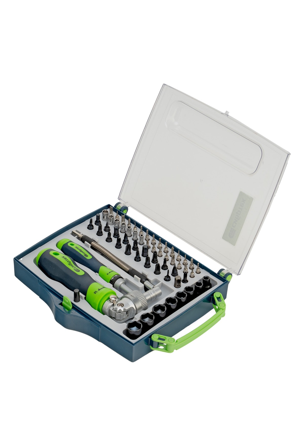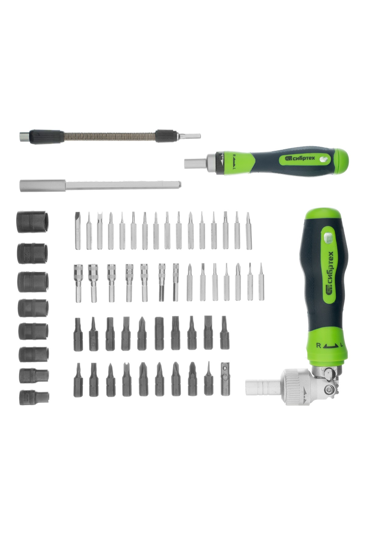 Отвертки реверсивные с набором бит, торцевых головок, 61 предмет, CrV Сибртех