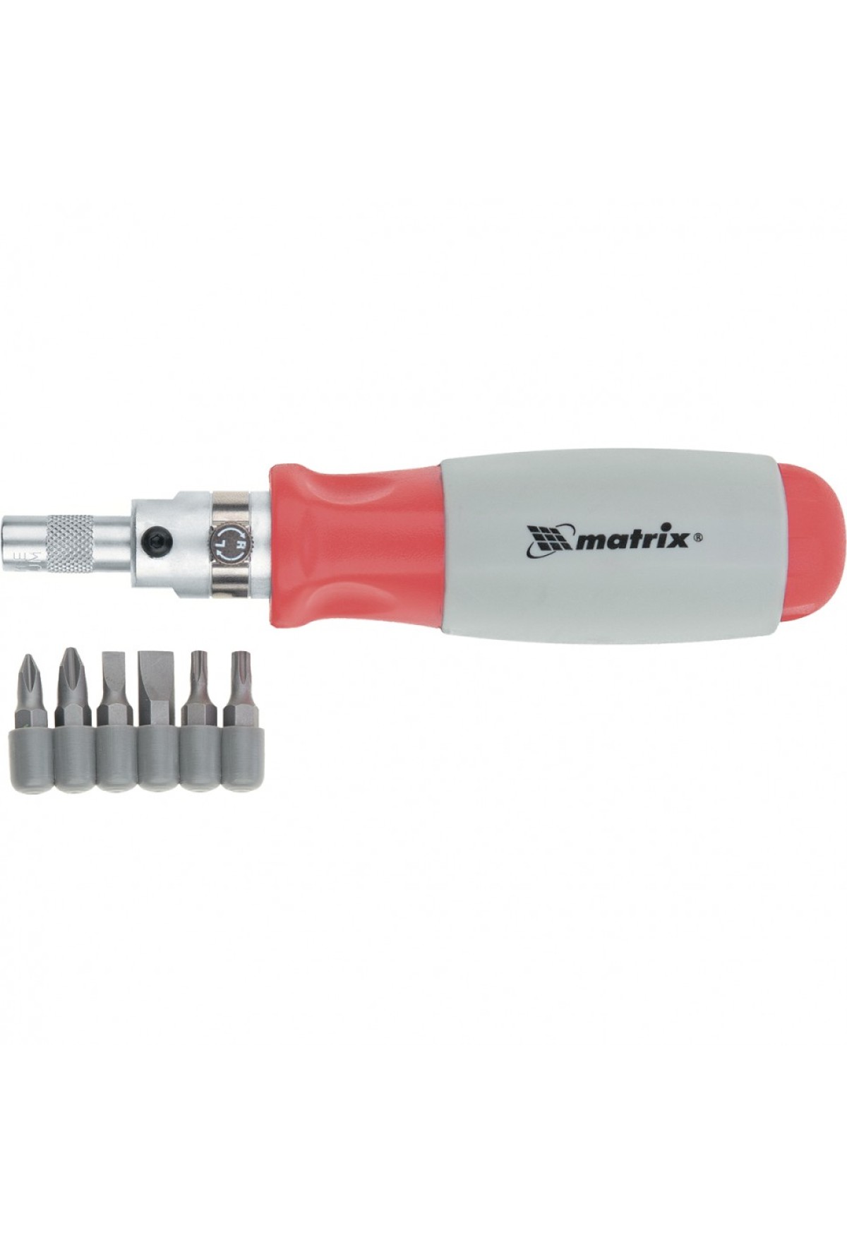 Отвертка реверсивная, силовой элемент под ключ, набор бит, CrV, 6 шт Matrix