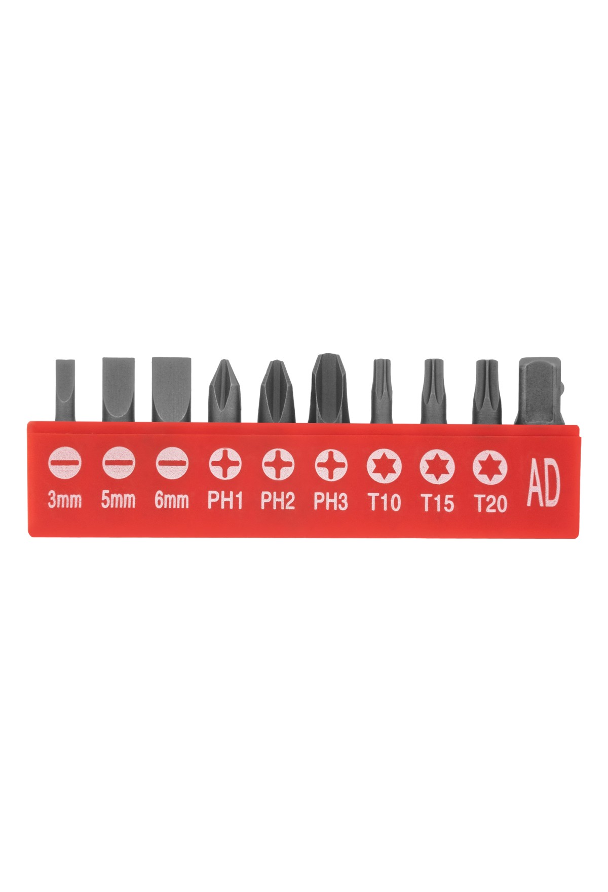| Комплектация | Отвертка рверсивная - 1 штБиты 25 мм: РН1, РН2, РН3, SL4, SL5, SL6, Т10, Т15, Т20 - 9 штАдатер для торцевых головок 25 мм |