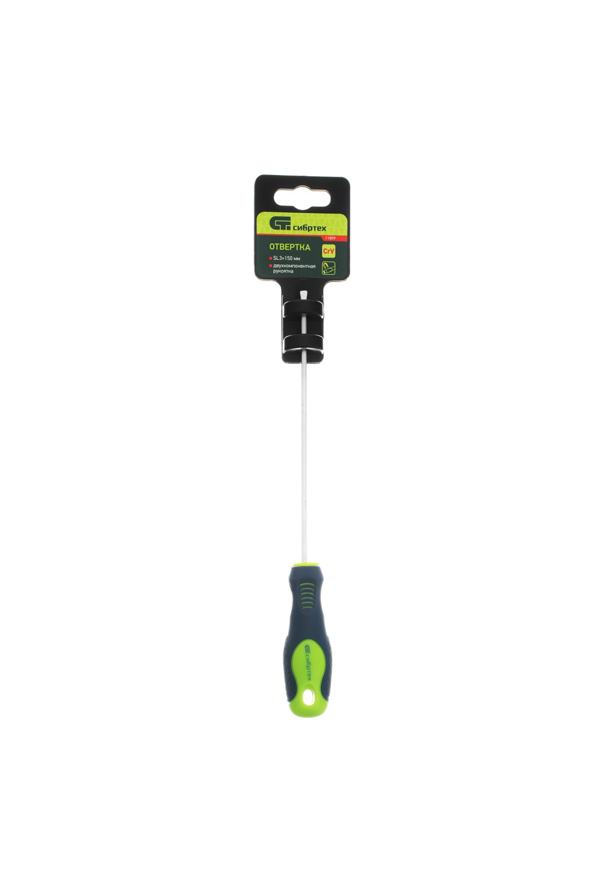 Технические характеристики Отвертка, SL3 х 150 мм, CrV, двухкомпонентная рукоятка Сибртех