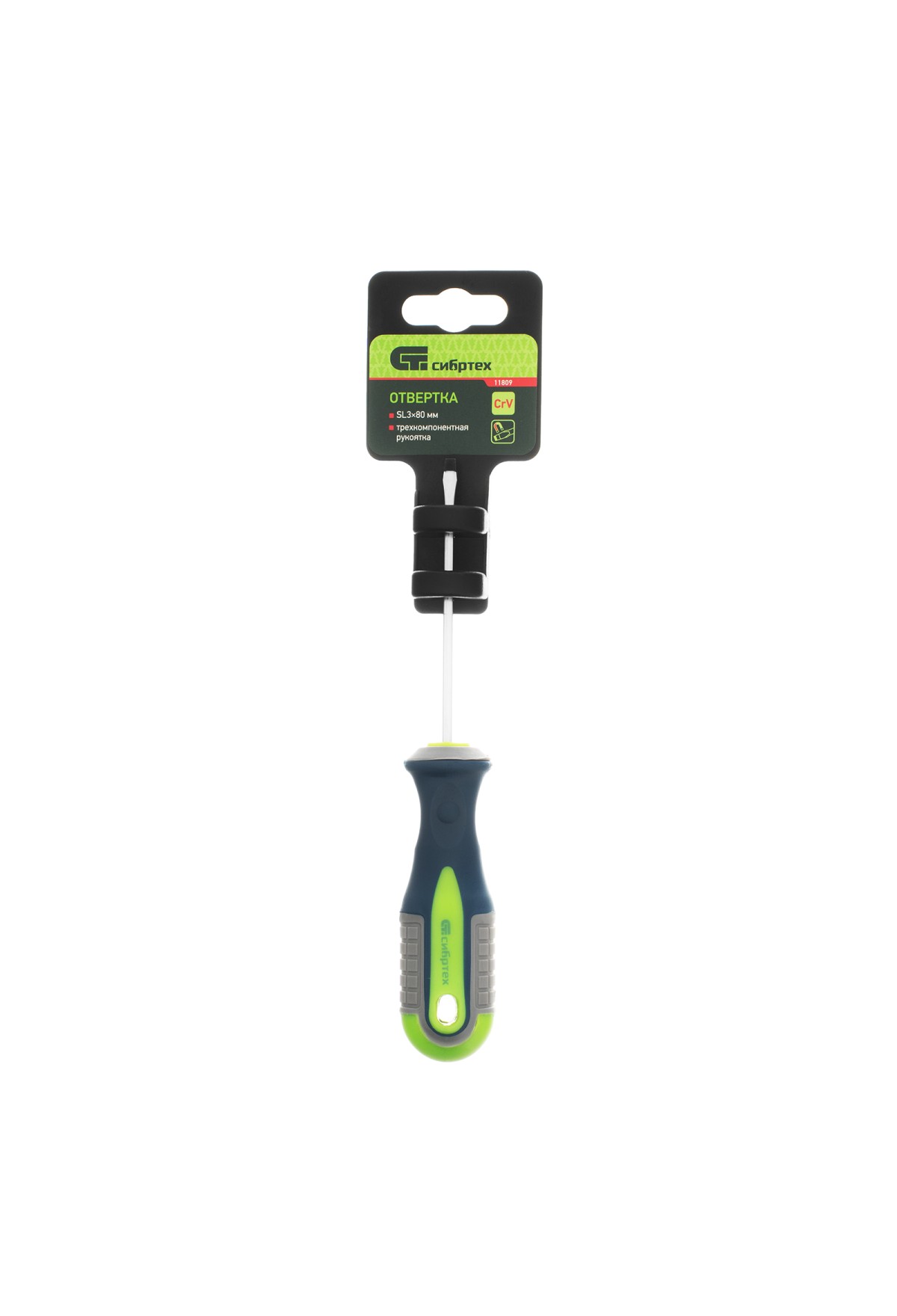 Технические характеристики Отвертка, SL3 х 80 мм, CrV, трехкомпонентная рукоятка Сибртех
