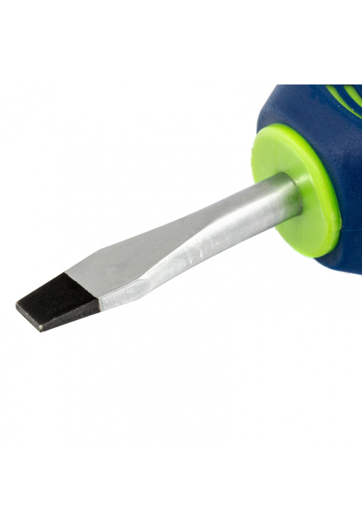 Отвертка Сибртех 11853, SL6 х 38 мм, из стали CrV, с 2-х компонентной рукояткой, подходит для работ, не требующих большого усилия затяжки. С ее помощью осуществляется монтаж/демонтаж крепежных элементов типа Slotted. Отвертка оснащена коротким стержнем 38 мм, поэтому подходит для работ в ограниченном пространстве, что актуально в автомастерских. Также она пригодится при проведении бытового ремонта.
