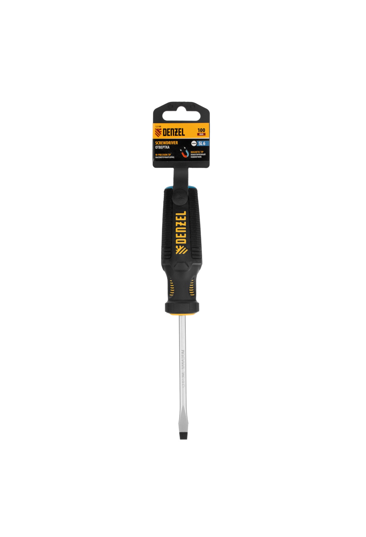 Технические характеристики Отвертка SL6x100 мм, CrV, трехкомпонентная рукоятка Denzel