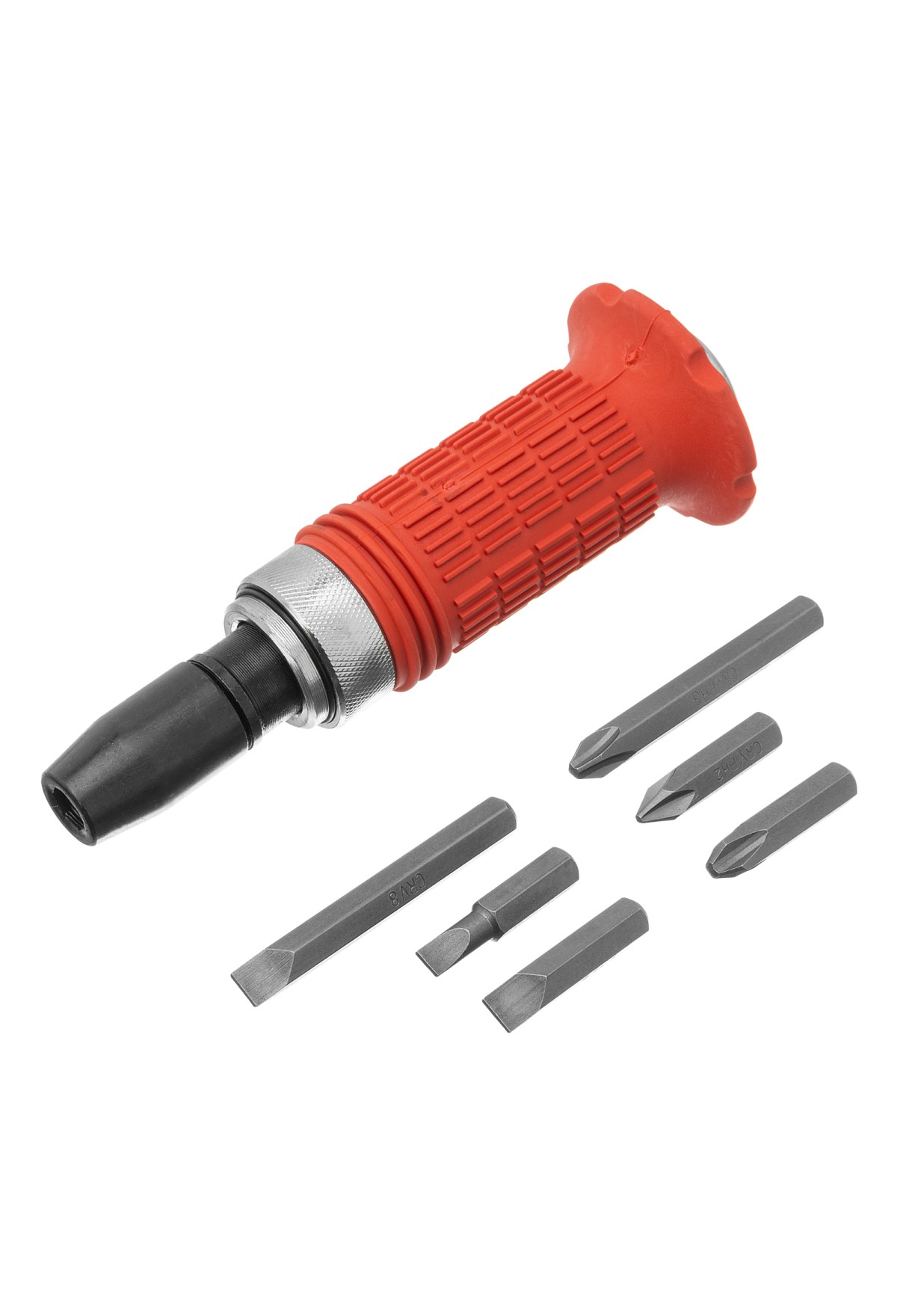 Ударно-поворотная отвертка Matrix 11579 с присоединительным размером 1/2 дюйма, с набором бит из 6 шт., с обрезиненной ручкой, в пластиковом боксе, используется для работ с резьбовыми соединениями. Благодаря металлическому затыльнику выдерживает удары молотком, поэтому справляется даже с перетянутыми или заржавевшими крепежами. Входящие в набор биты подходят для шлицев SL и PH. Инструмент предназначен для бытового использования, а также будет полезен дома, на даче или в гараже.