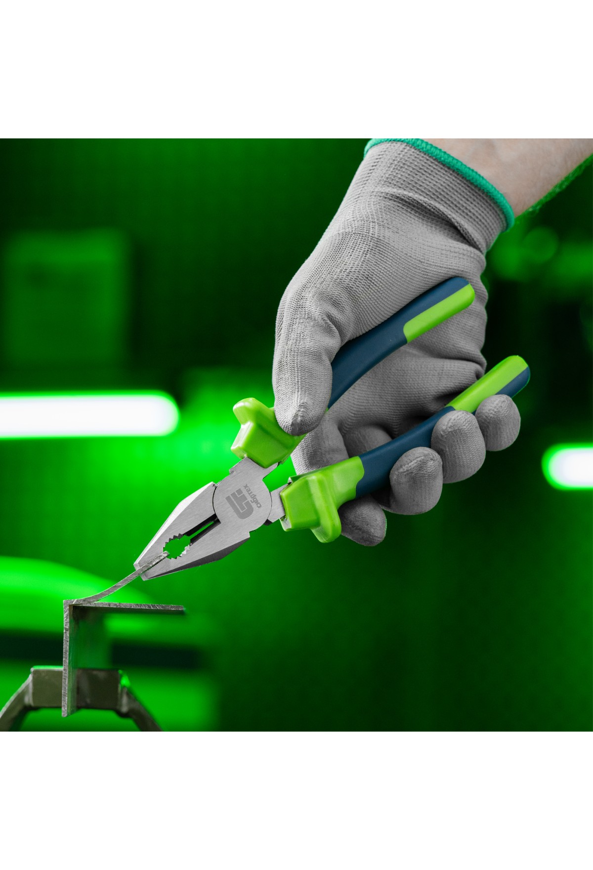 Комбинированные плоскогубцы Сибртех 17052 длиной 200 мм, с двухкомпонентными рукоятками, предназначены для перекусывания проволоки и захвата крепежа, прутков и других деталей. Будут полезны слесарю и монтажнику во время наладки оборудования, ремонта сантехники и выполнения других работ.