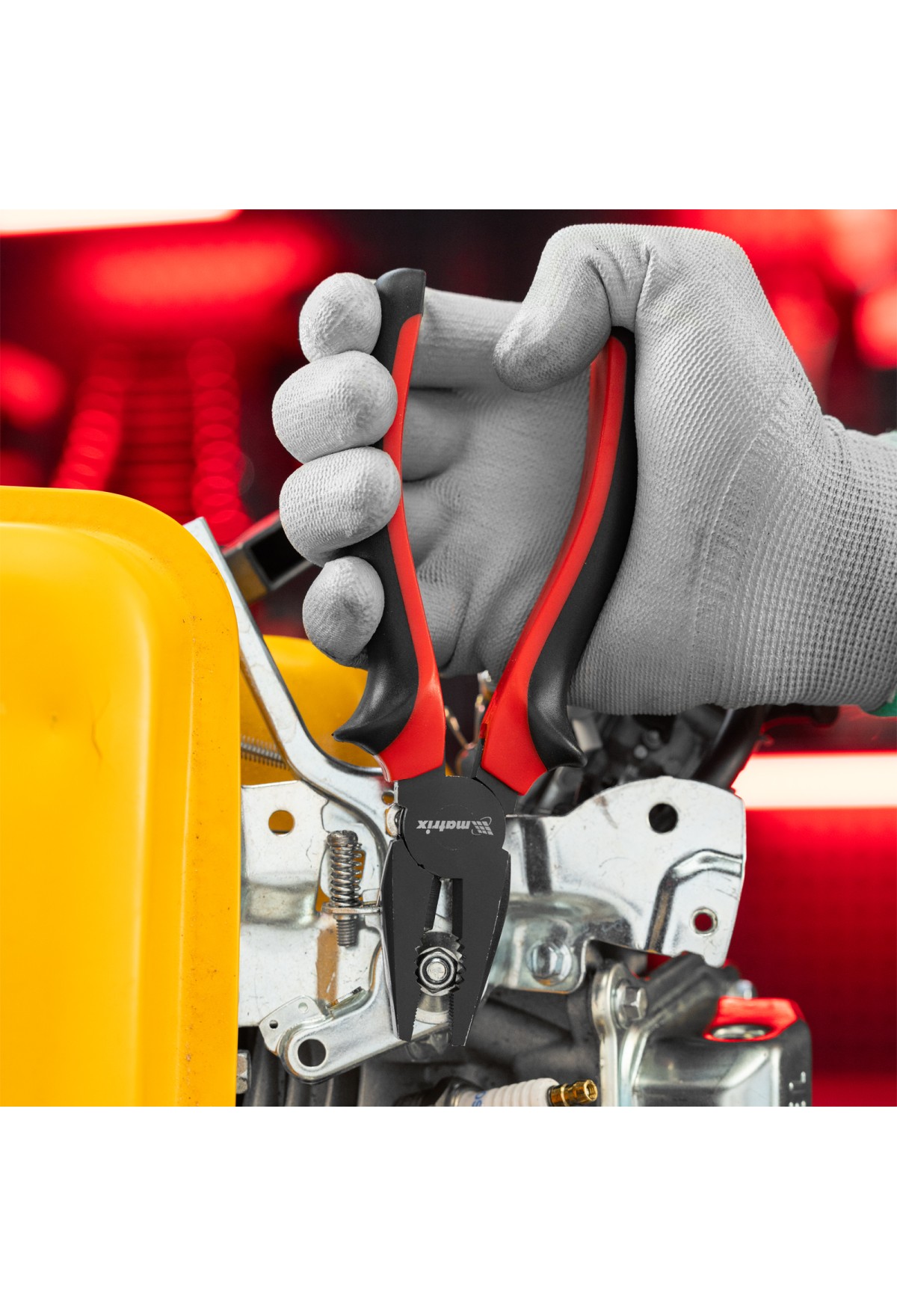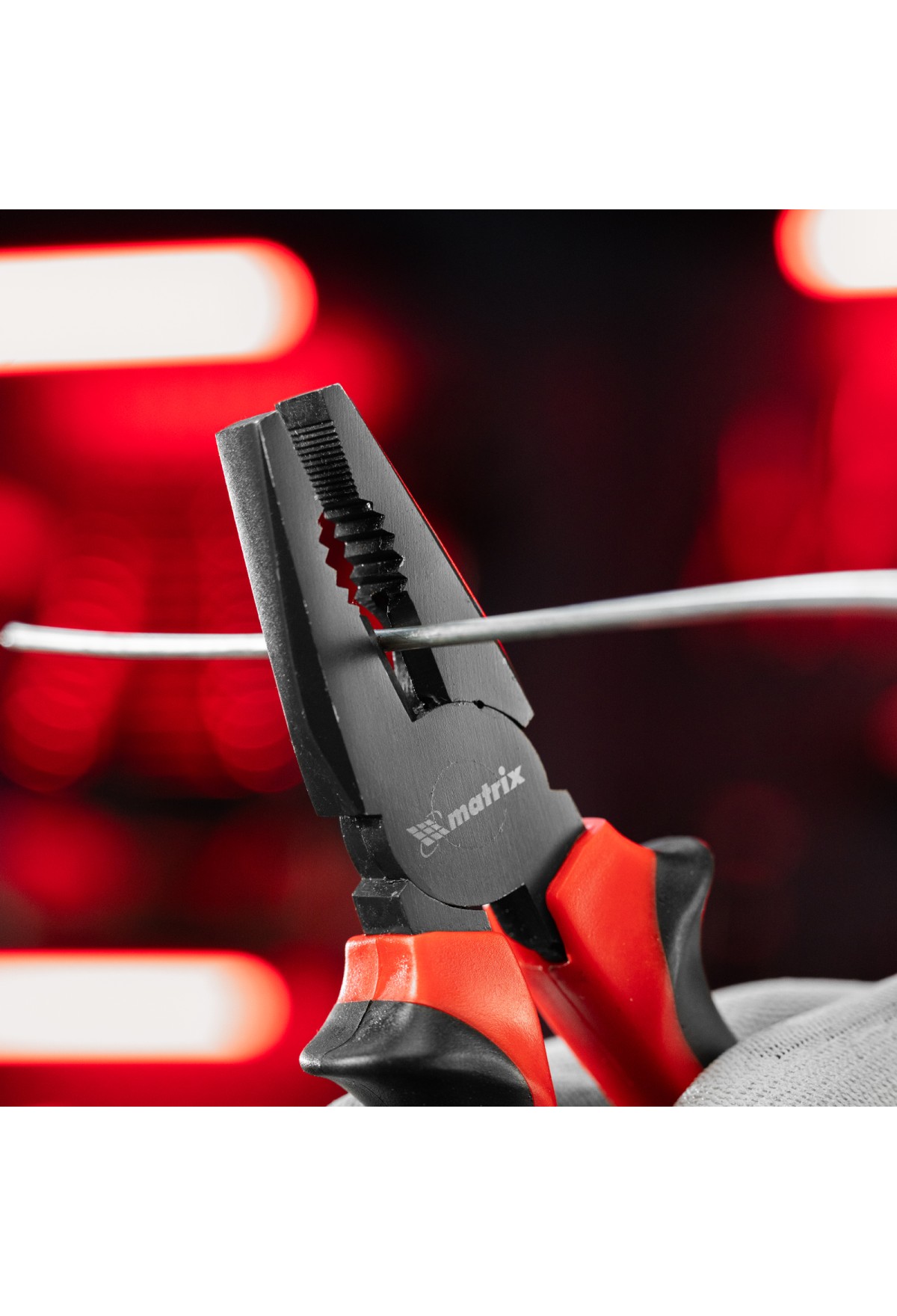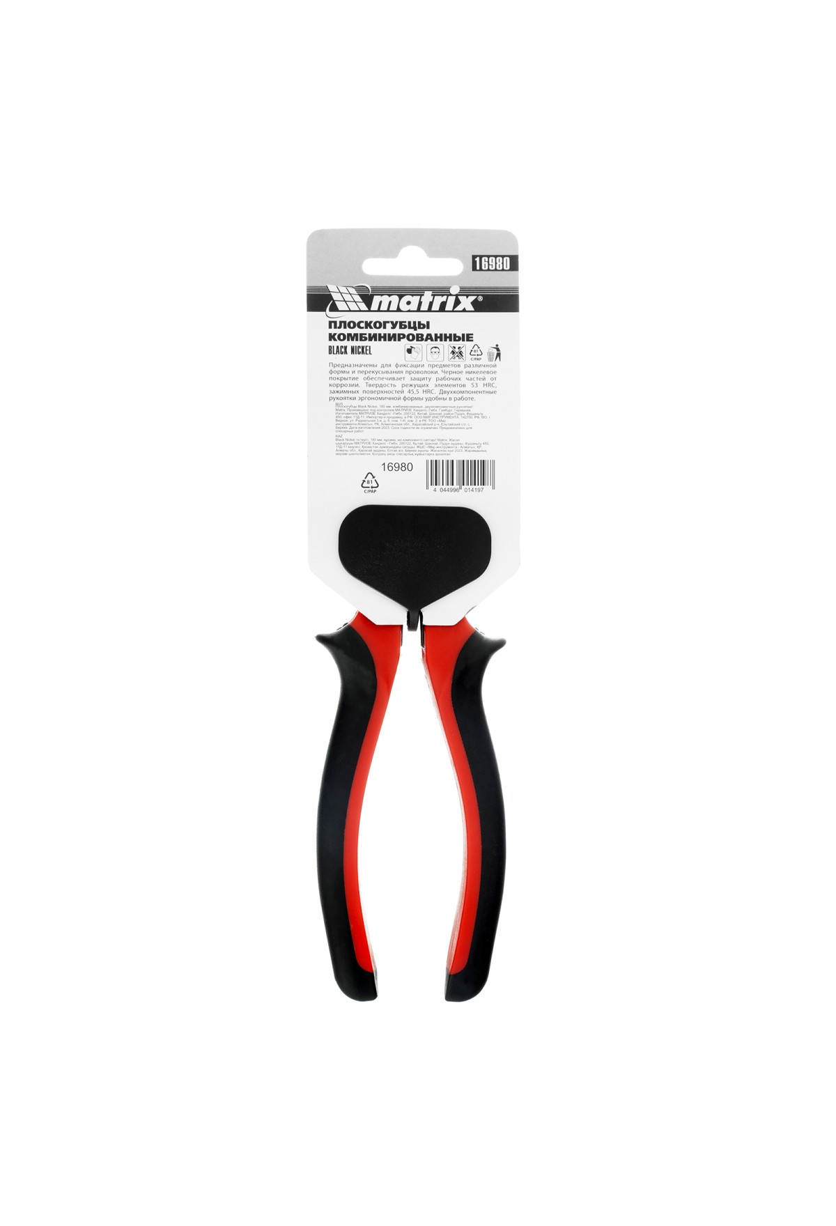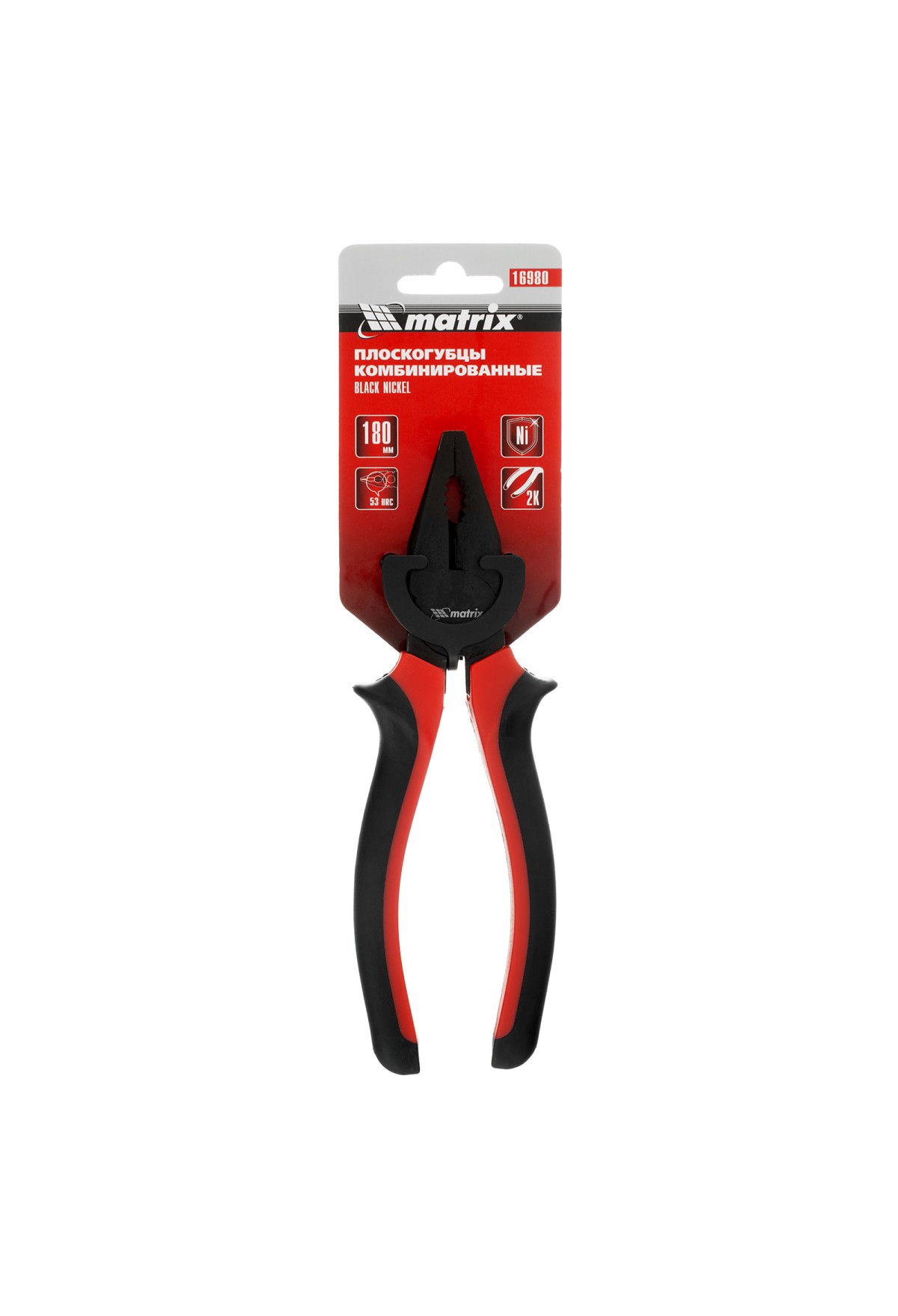 Комбинированные плоскогубцы Matrix Black Nickel 16980 длиной 180 мм, с двухкомпонентными рукоятками, используются для фиксации заготовок, крепежных элементов и других деталей, а также для разрезания проводов и проволоки. Губки с зазубренной поверхностью и специальными выемками способны удерживать как плоские, так и круглые предметы. Плоскогубцы применяются в профессиональной и бытовой сфере.