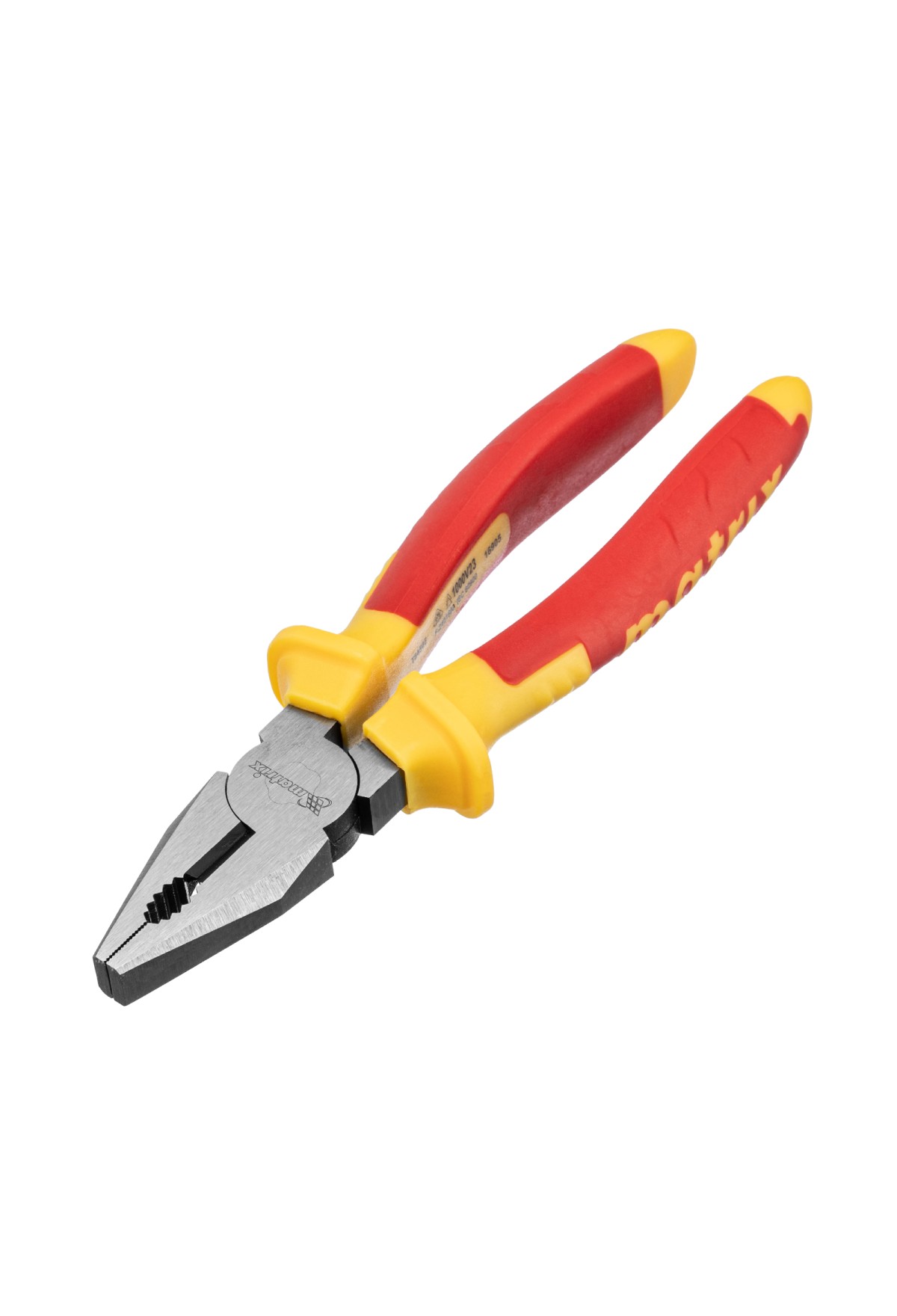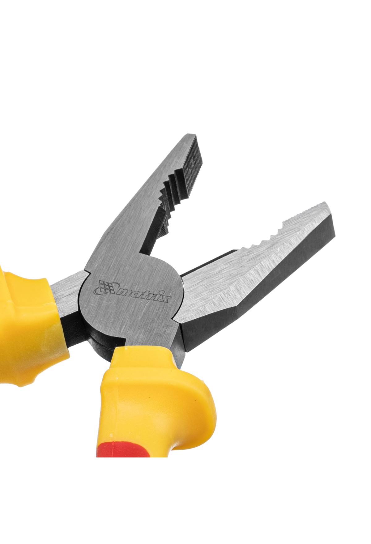 Комбинированные плоскогубцы Matrix Insulated 16905 длиной 200 мм, с двухкомпонентными рукоятками, предназначены для зажимания различных деталей, крепежных элементов, проводов или проволоки. Благодаря специальным выемкам на рабочих поверхностях инструмент может захватывать круглые предметы, а острые насечки не дают губкам соскальзывать. Режущие кромки предназначены для перекусывания проволоки. Двухкомпонентные рукоятки выполнены из диэлектрического материала. Инструмент пригодится во время строительства, ремонта, будет полезен в слесарной мастерской, а также дома или в гараже. Не допускается работа с плоскогубцами при наличии напряжения в сети!