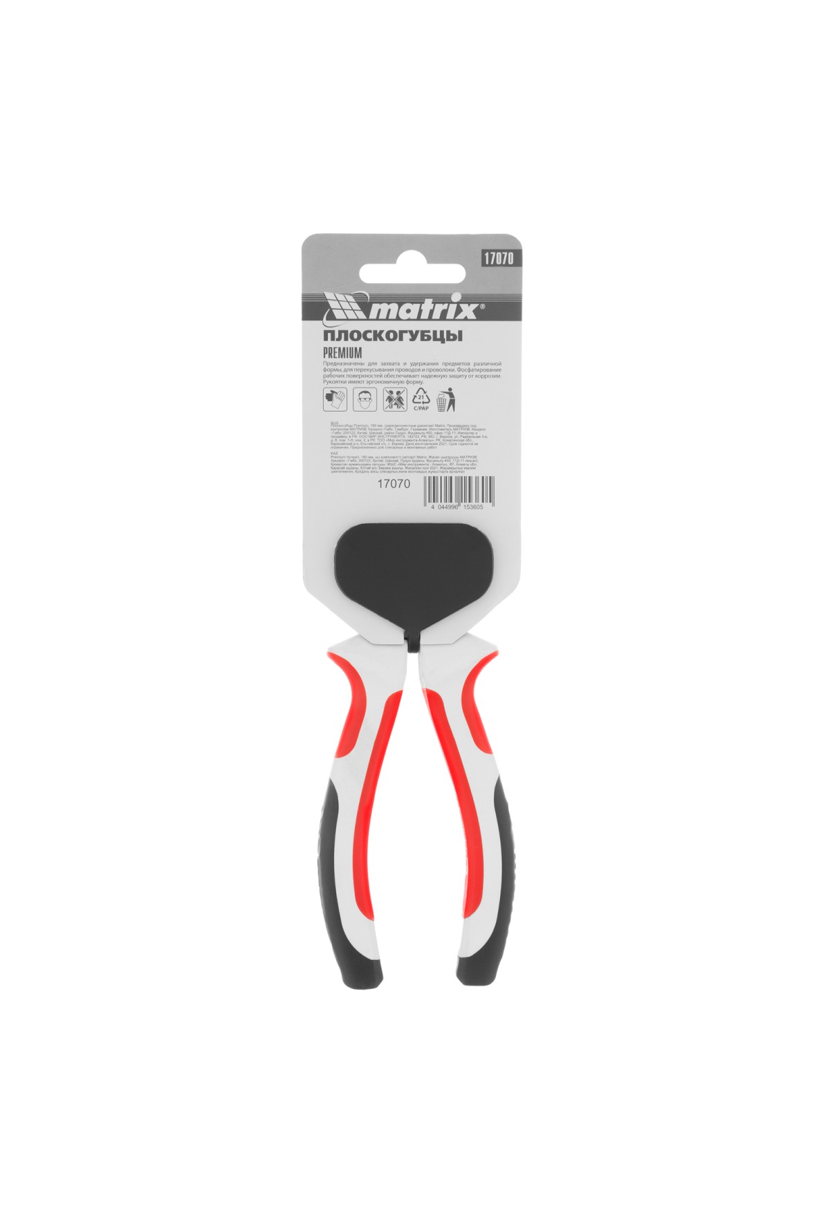 Плоскогубцы Matrix Premium 17070 длиной 160 мм, с трехкомпонентными рукоятками, удобны для фиксации и удерживания небольших деталей, а также для перекусывания проволоки и проводов. Губки с острыми насечками не соскальзывают с поверхности, а специальные выемки позволяют захватывать круглые предметы. Инструмент будет полезен на строительной площадке, в слесарной и столярной мастерской, автосервисе, а также пригодится в домашнем хозяйстве.