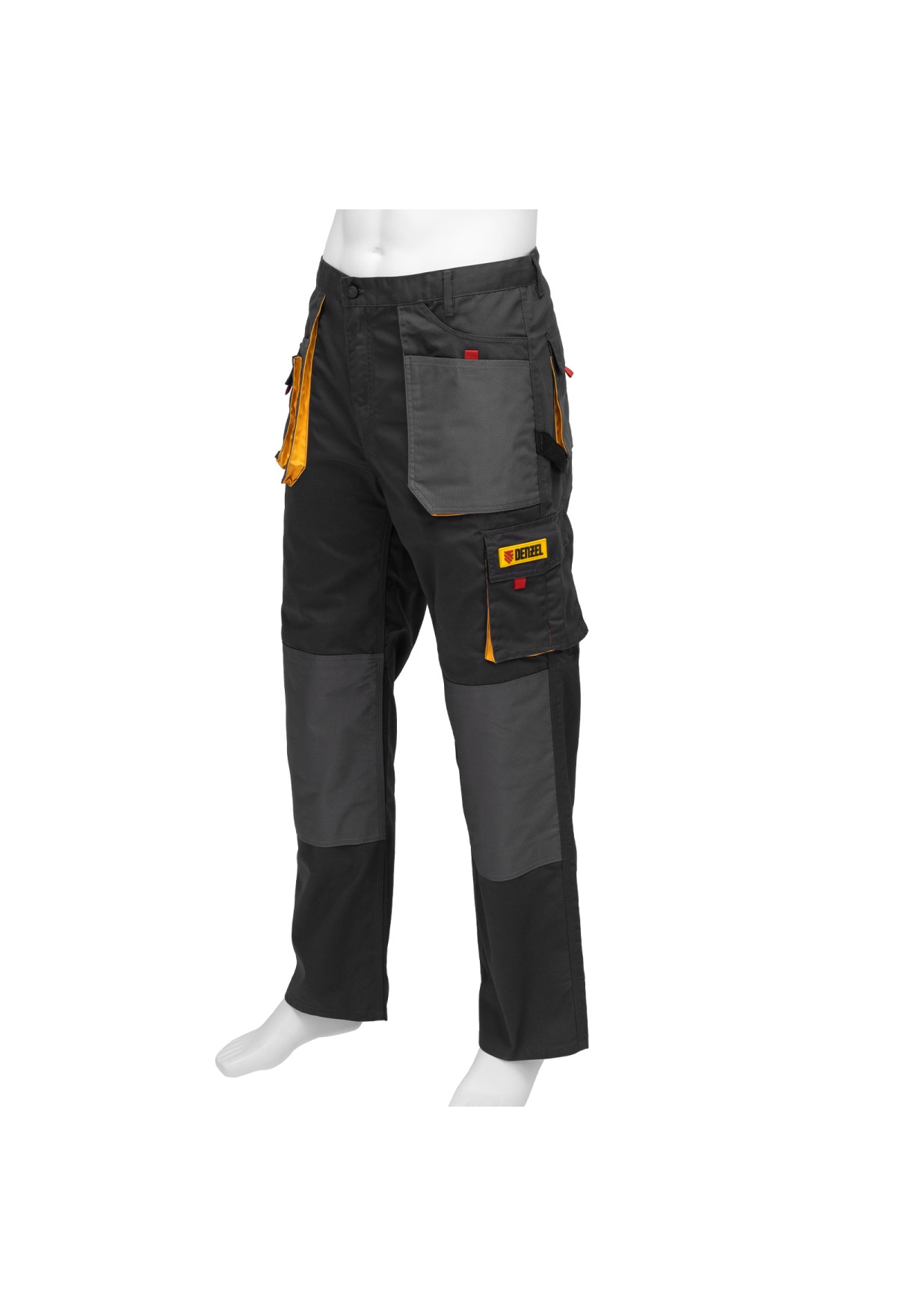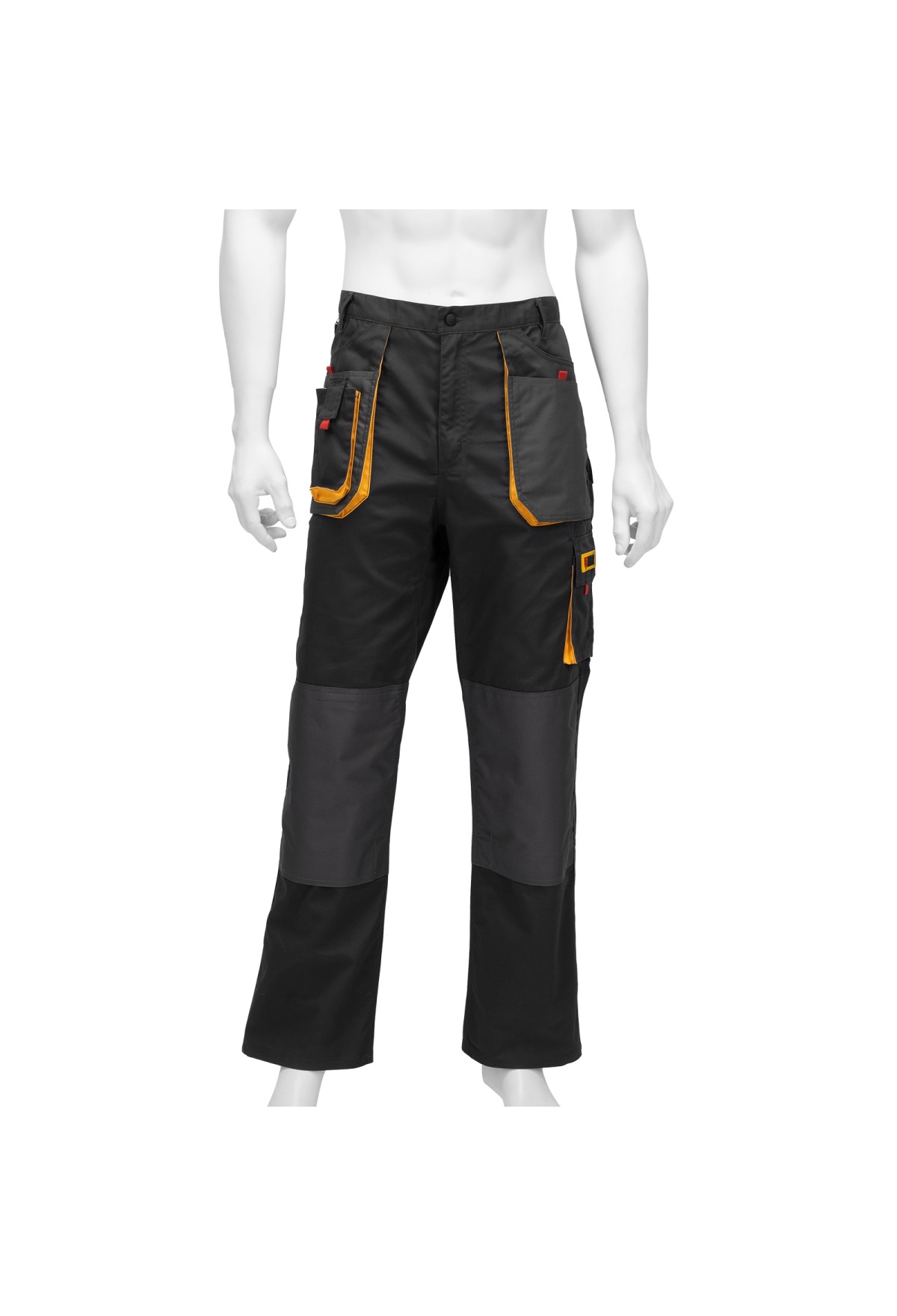 Рабочие брюки Denzel 90383 размера L рассчитаны на рост 176-182 см и используются для выполнения профессиональных строительных, ремонтных, сантехнических и производственных работ в теплое время года или в отапливаемом помещении. Защищают пользователя от общих производственных загрязнений, нетоксичной пыли, ветра и незначительных механических воздействий. Изготовлены из ткани плотностью 260 г/м2 (65% полиэстер, 35% хлопок). За счет наличия хлопковых волокон в составе ткань хорошо пропускает воздух и приятна на теле, полиэстер обеспечивает устойчивость к истиранию. Брюки выполнены в практичном темно-сером цвете.