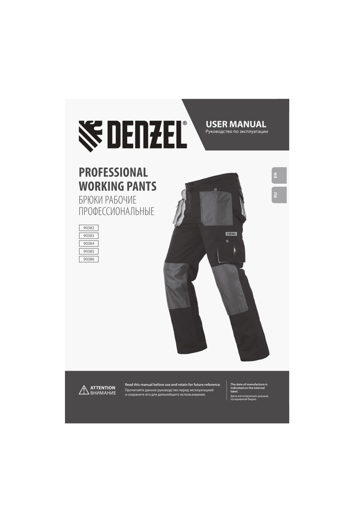 Технические характеристики Брюки профессиональные рабочие, 65% полиэстер 35% хлопок, M Denzel