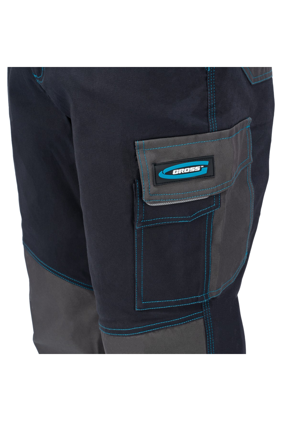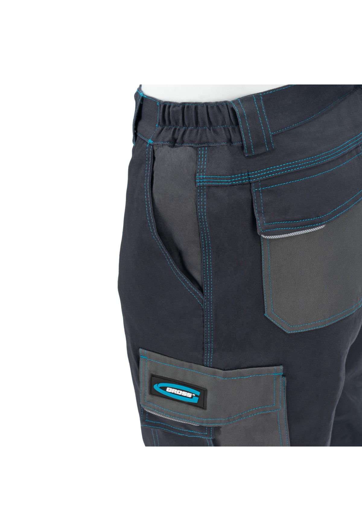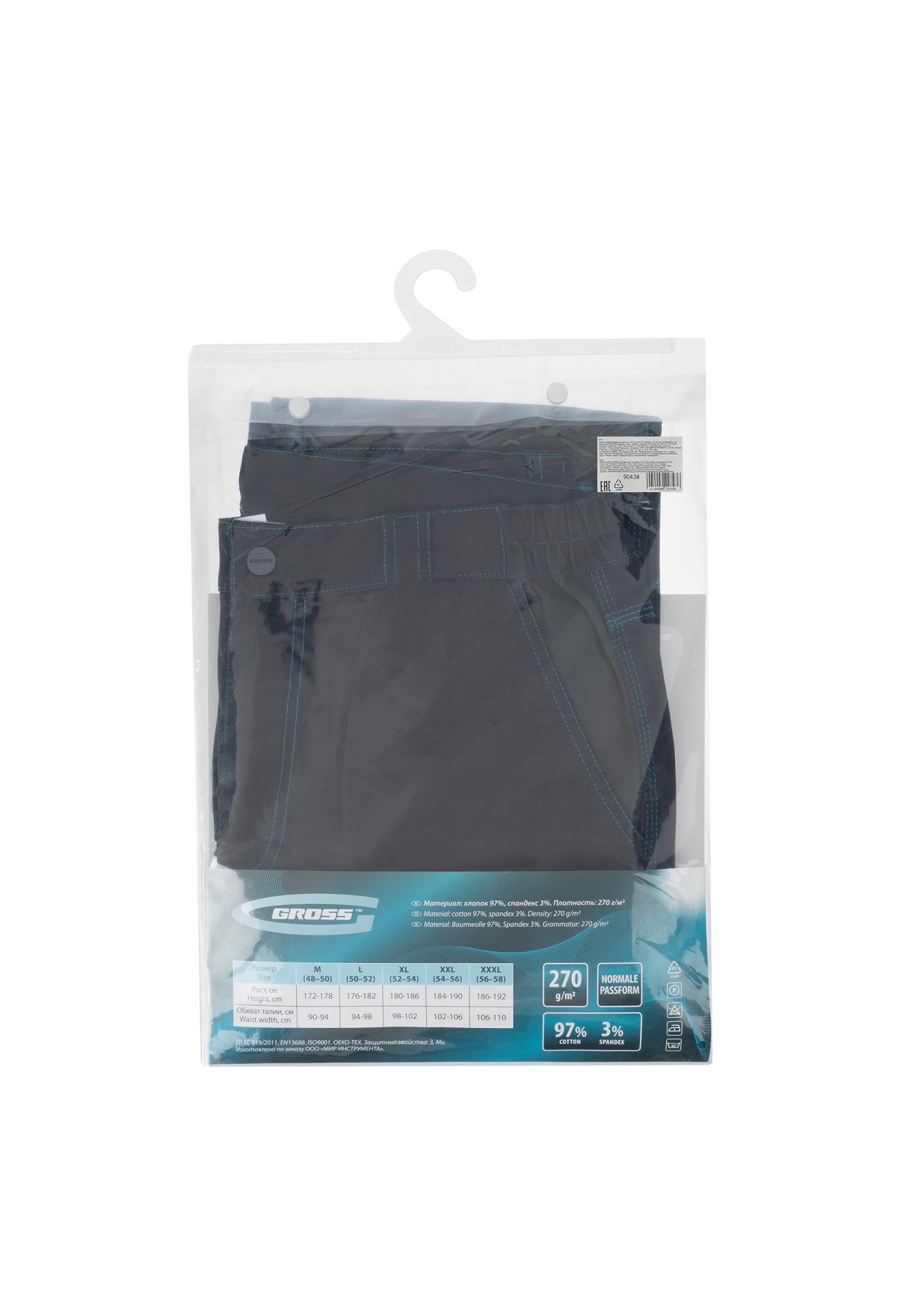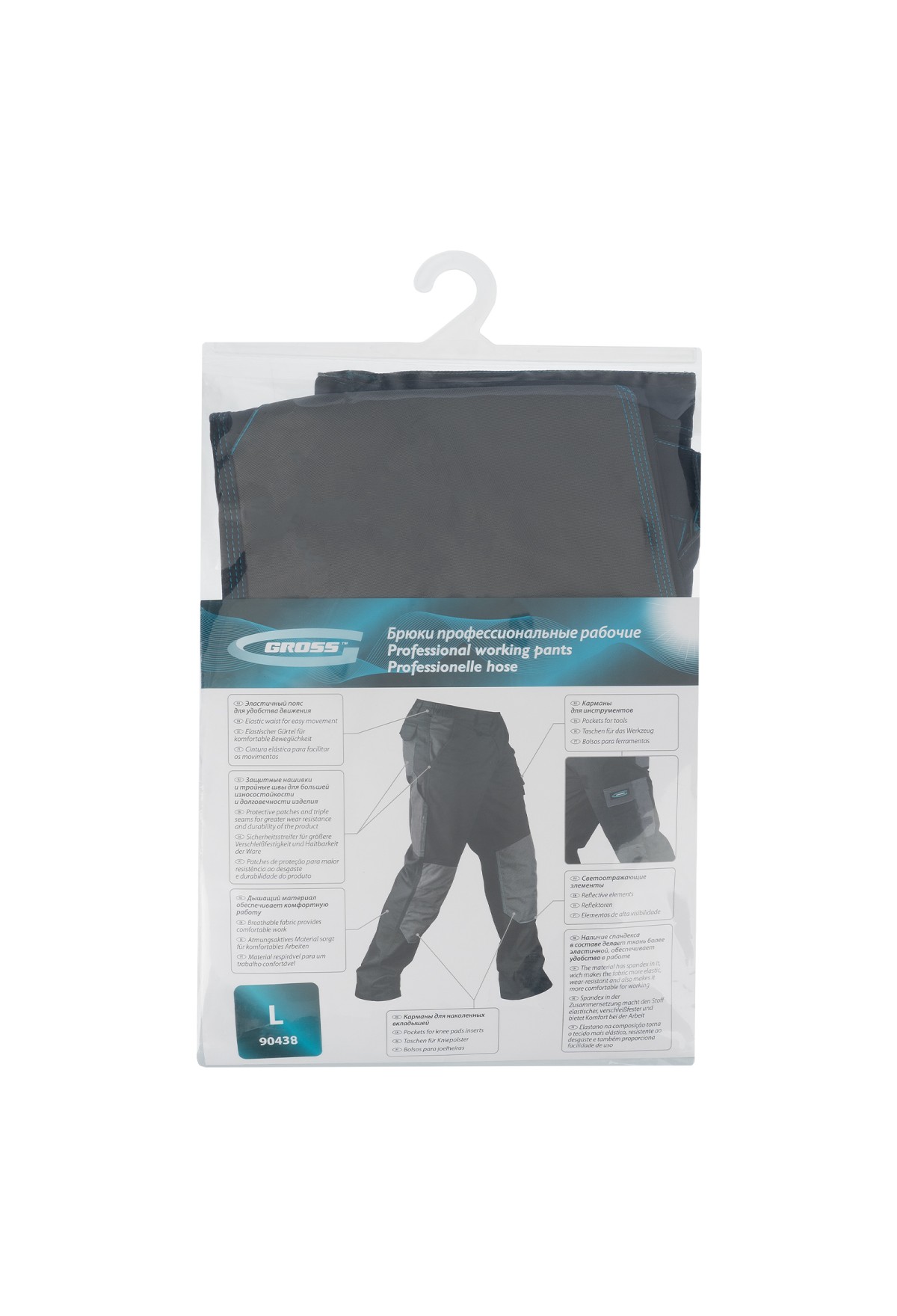 Профессиональные рабочие брюки Gross 90438 размера L рассчитаны на рост 176-182 см и защищают пользователя от общих производственных загрязнений, нетоксичной пыли, ветра и незначительных механических воздействий. Подойдут для выполнения различных видов работ в теплое время года или в отапливаемом помещении. Выполнены в практичном темно-сером цвете. Изготовлены из ткани с 97-процентным содержанием хлопка и 3-процентным содержанием спандекса. За счет наличия хлопковых волокон в составе ткань прекрасно пропускает воздух и приятна на теле, а спандекс делает ее более эластичной, поэтому в брюках удобно работать.