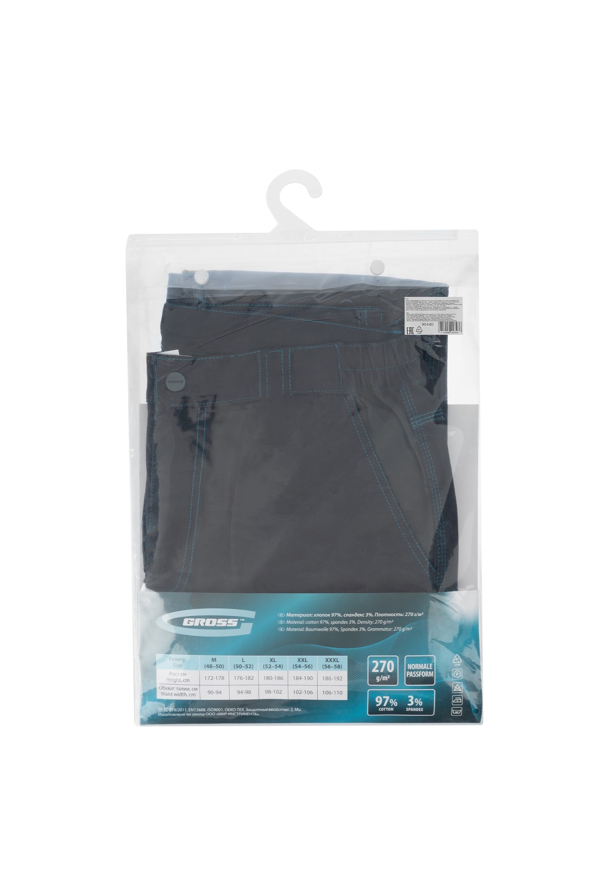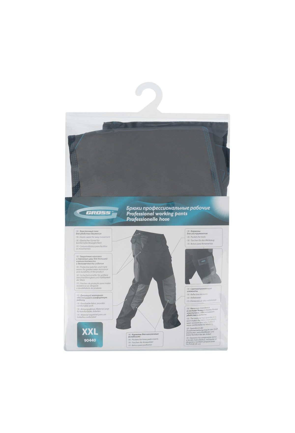 Профессиональные рабочие брюки Gross 90440 размера XXL рассчитаны на рост 184-190 см и защищают пользователя от общих производственных загрязнений, нетоксичной пыли, ветра и незначительных механических воздействий. Подойдут для выполнения различных видов работ в теплое время года или в отапливаемом помещении. Выполнены в практичном темно-сером цвете. Изготовлены из ткани с 97-процентным содержанием хлопка и 3-процентным содержанием спандекса. За счет наличия хлопковых волокон в составе ткань прекрасно пропускает воздух и приятна на теле, а спандекс делает ее более эластичной, поэтому в брюках удобно работать.