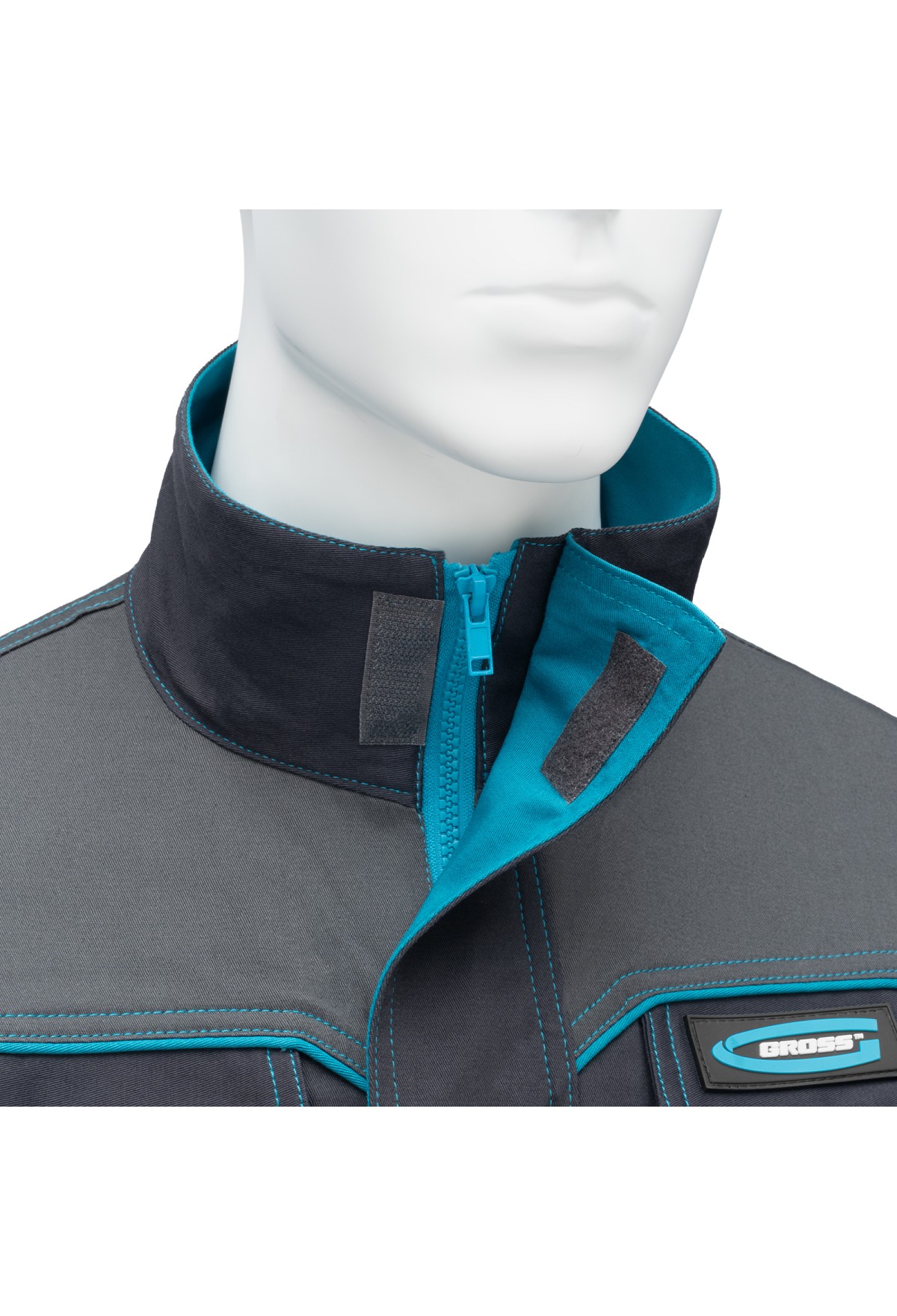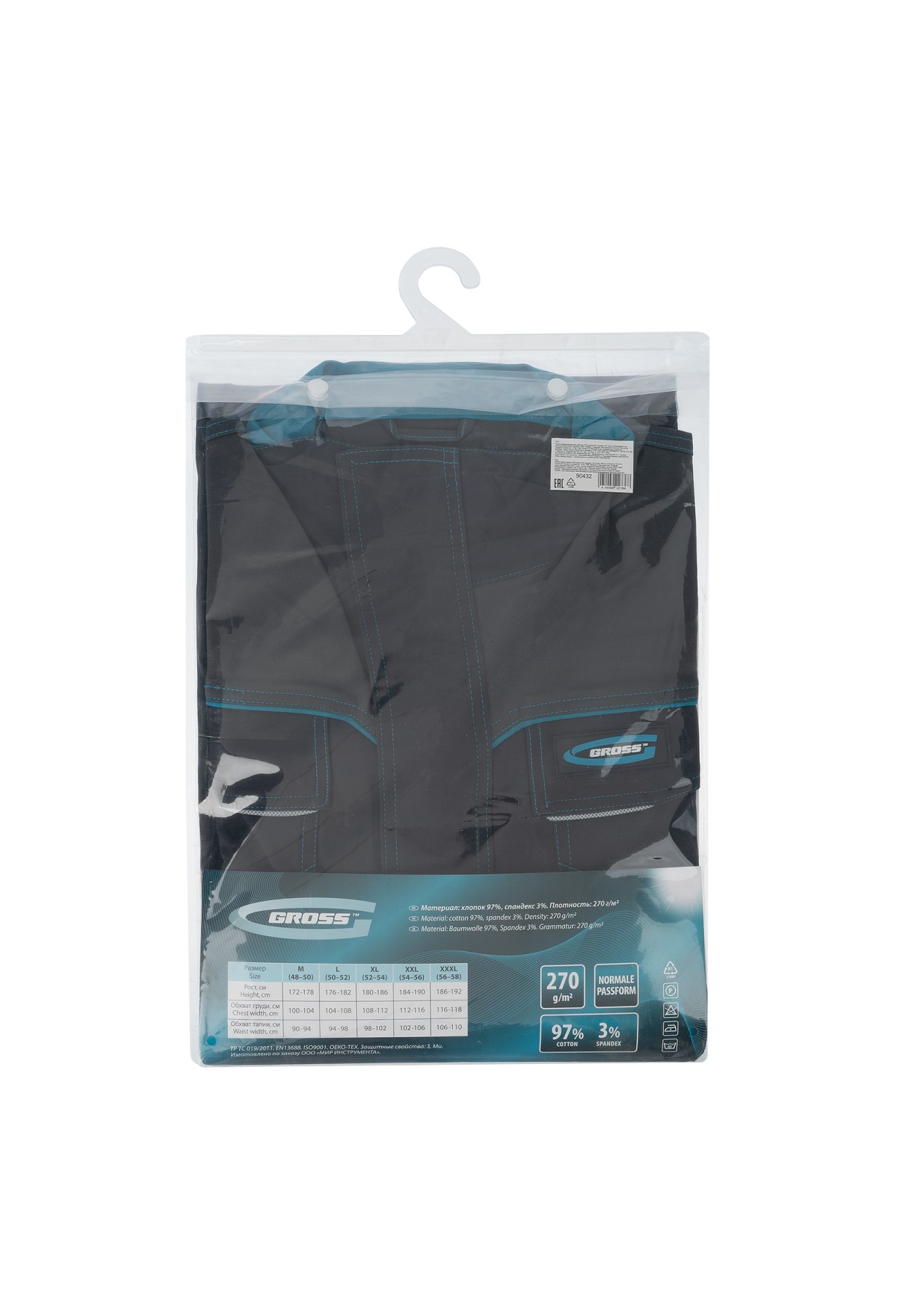 Профессиональная рабочая куртка Gross 90432 размера M защищает пользователя от общих производственных загрязнений, нетоксичной пыли, ветра и незначительных механических воздействий. Рассчитана на рост 172-178 см и предназначена для использования в теплое время года или в отапливаемом помещении. Куртка изготовлена из ткани с 97-процентным содержанием хлопка и 3-процентным содержанием спандекса. За счет наличия хлопковых волокон в составе ткань прекрасно пропускает воздух и приятна на теле, а спандекс делает ее более эластичной, поэтому в куртке удобно работать. Одежда выполнена в практичном темно-сером цвете.