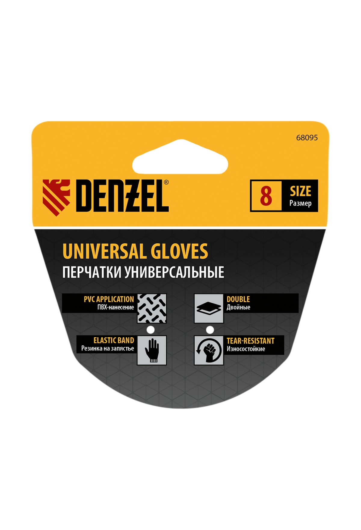 Технические характеристики Перчатки универсальные, двойные, ПВХ нанесение, размер 8 Denzel