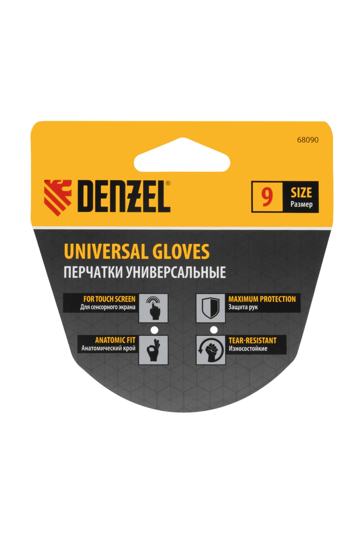 Технические характеристики Перчатки универсальные, двойные, работа с сенсорным экраном, размер 9 Denzel
