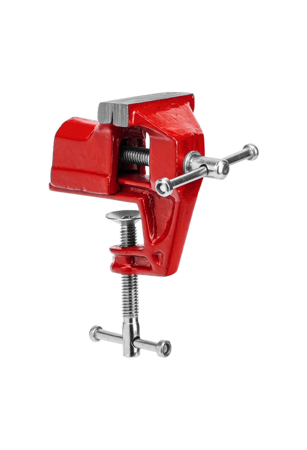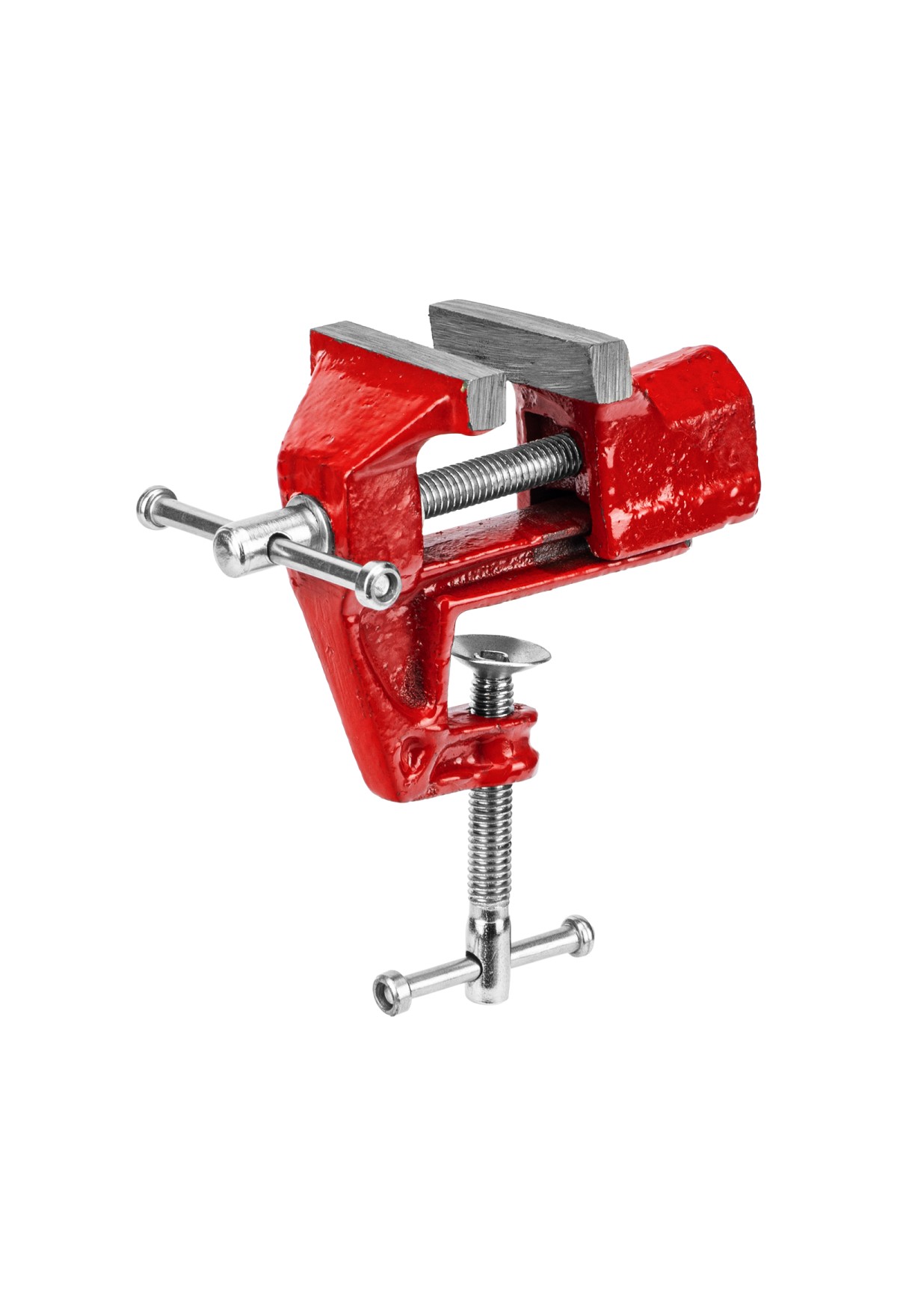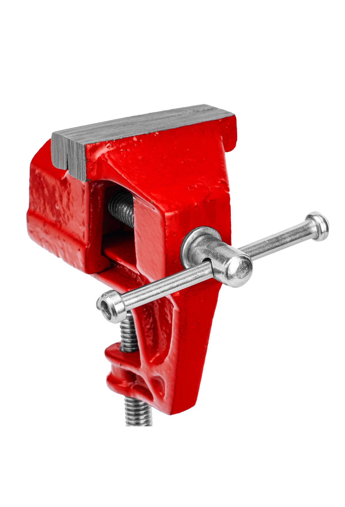 - Винтовой зажимной механизм позволяет легко устанавливать и снимать тиски с рабочего стола.