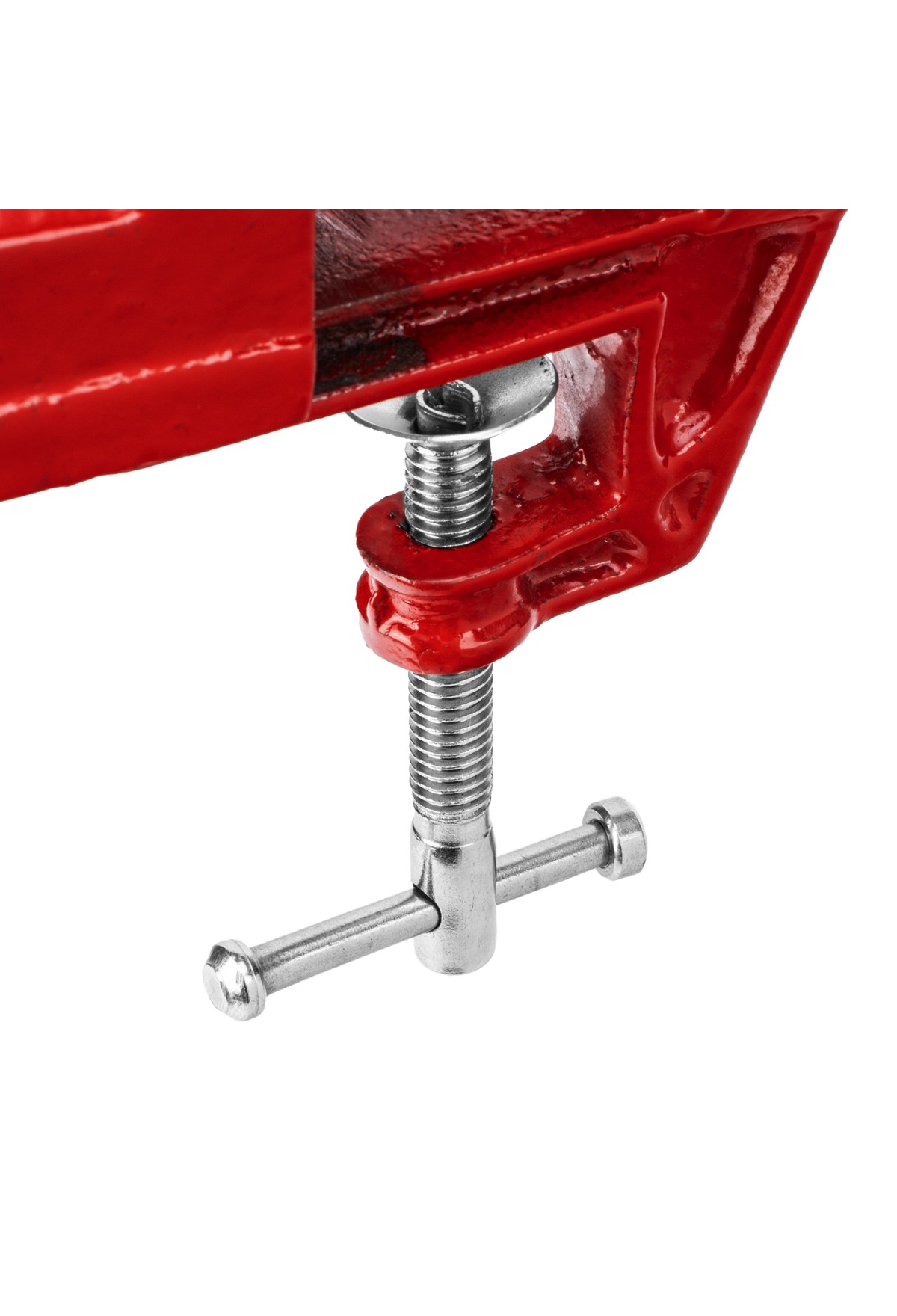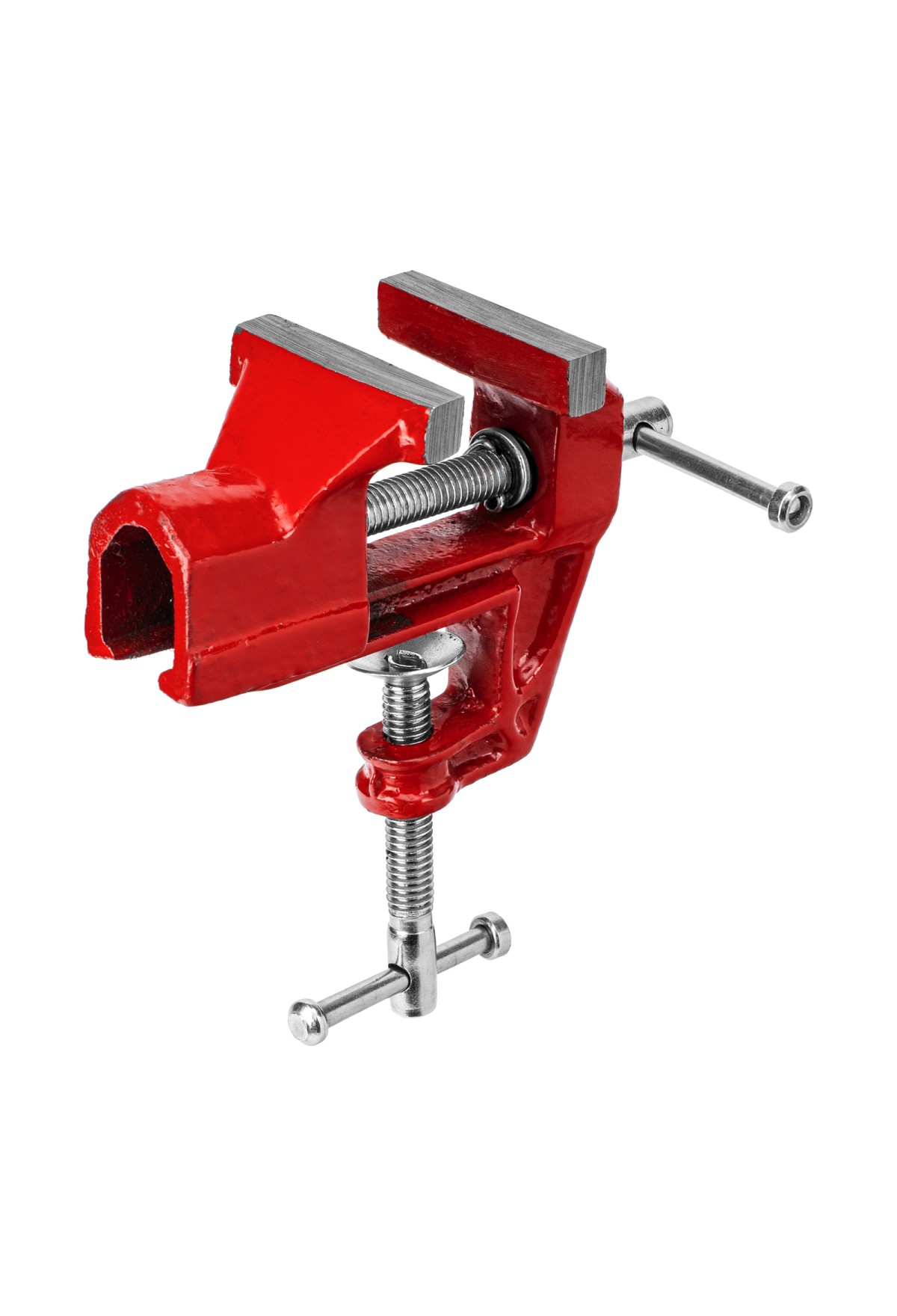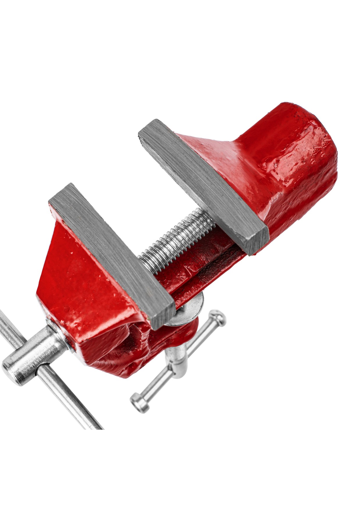 - Винтовой зажимной механизм позволяет легко устанавливать и снимать тиски с рабочего стола.