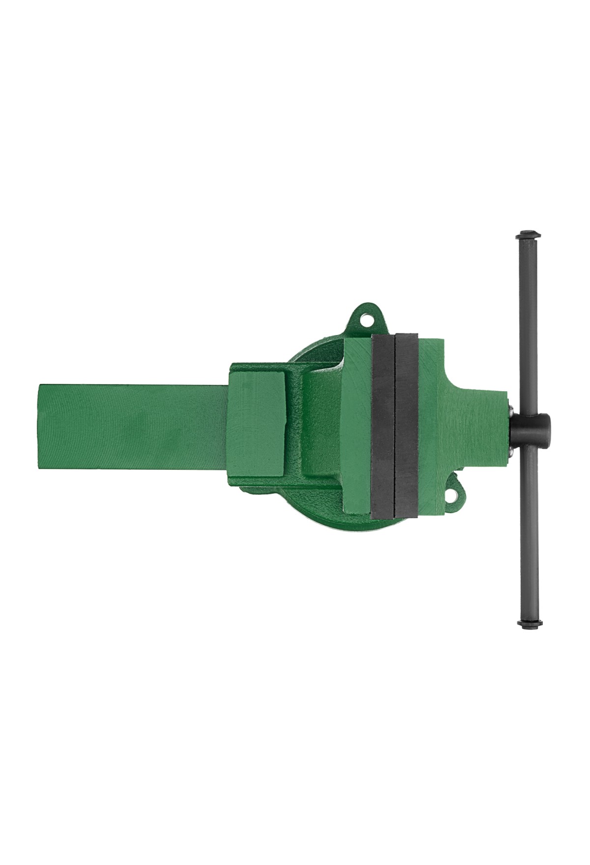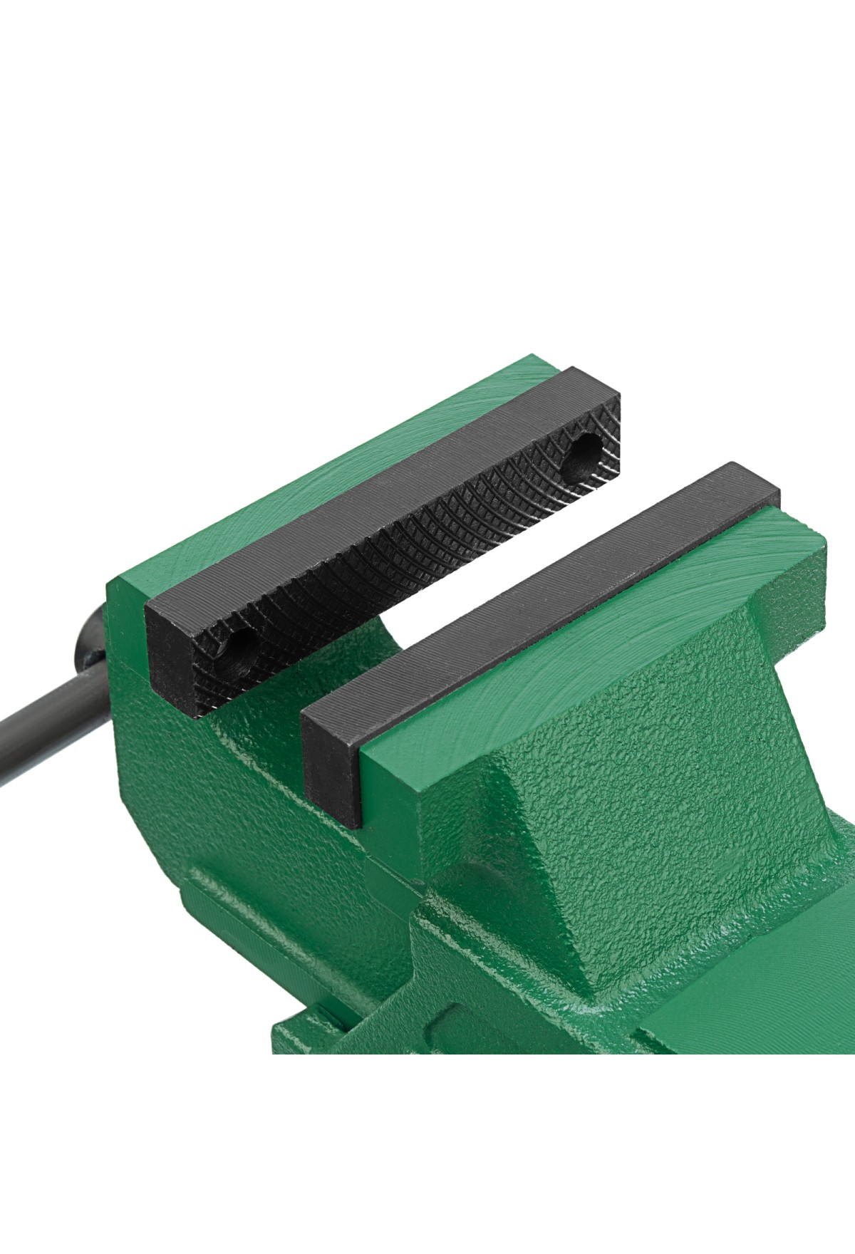 Поворотные слесарные тиски ТСЧ 125 18652 с губками шириной 125 мм, с креплением для стола и винтовым зажимом, используются для надежной фиксации крупных деталей. В основании предусмотрены отверстия для крепления к верстаку. Тиски оптимальны для выполнения непрофессиональных столярных и слесарных работ.