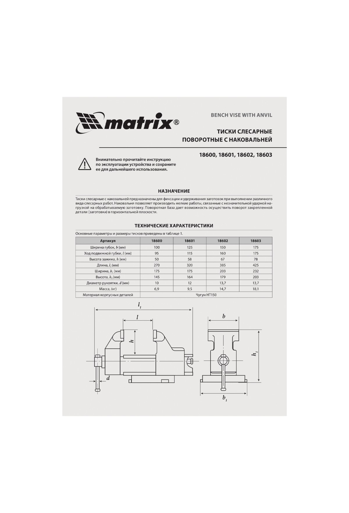 Тэги: Тиски слесарные, 150 мм, поворотные, с наковальней Matrix, VR6-18602, MATRIX, VR6, VR6-Слесарный инструмент, VR6-Тиски