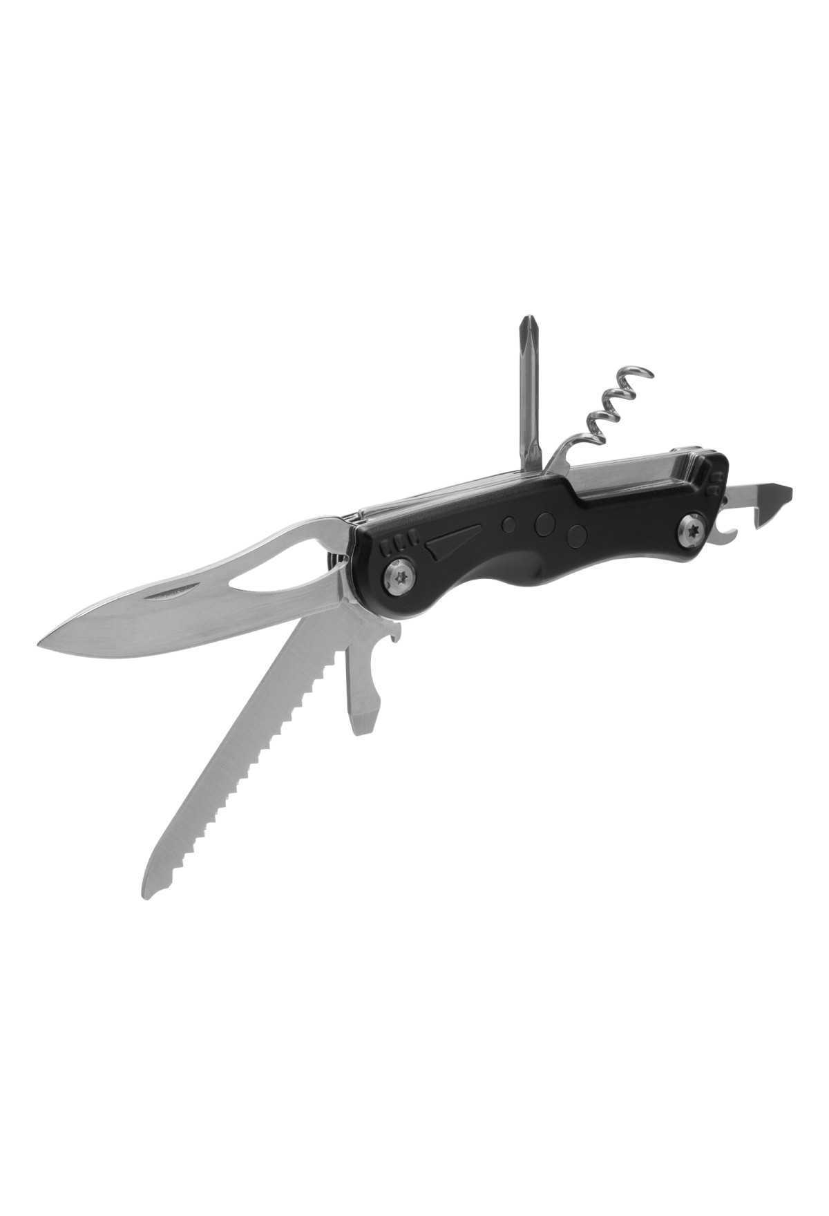 Многофункциональный нож Matrix 17624 длиной 107 мм имеет 7 функций и поставляется с чехлом. Способен резать картон и другие материалы, откручивать и закручивать резьбовой крепеж, открывать бутылки и консервные банки. Складной нож будет полезен дома, на даче, на пикнике, охоте или рыбалке, также пригодится в гараже.