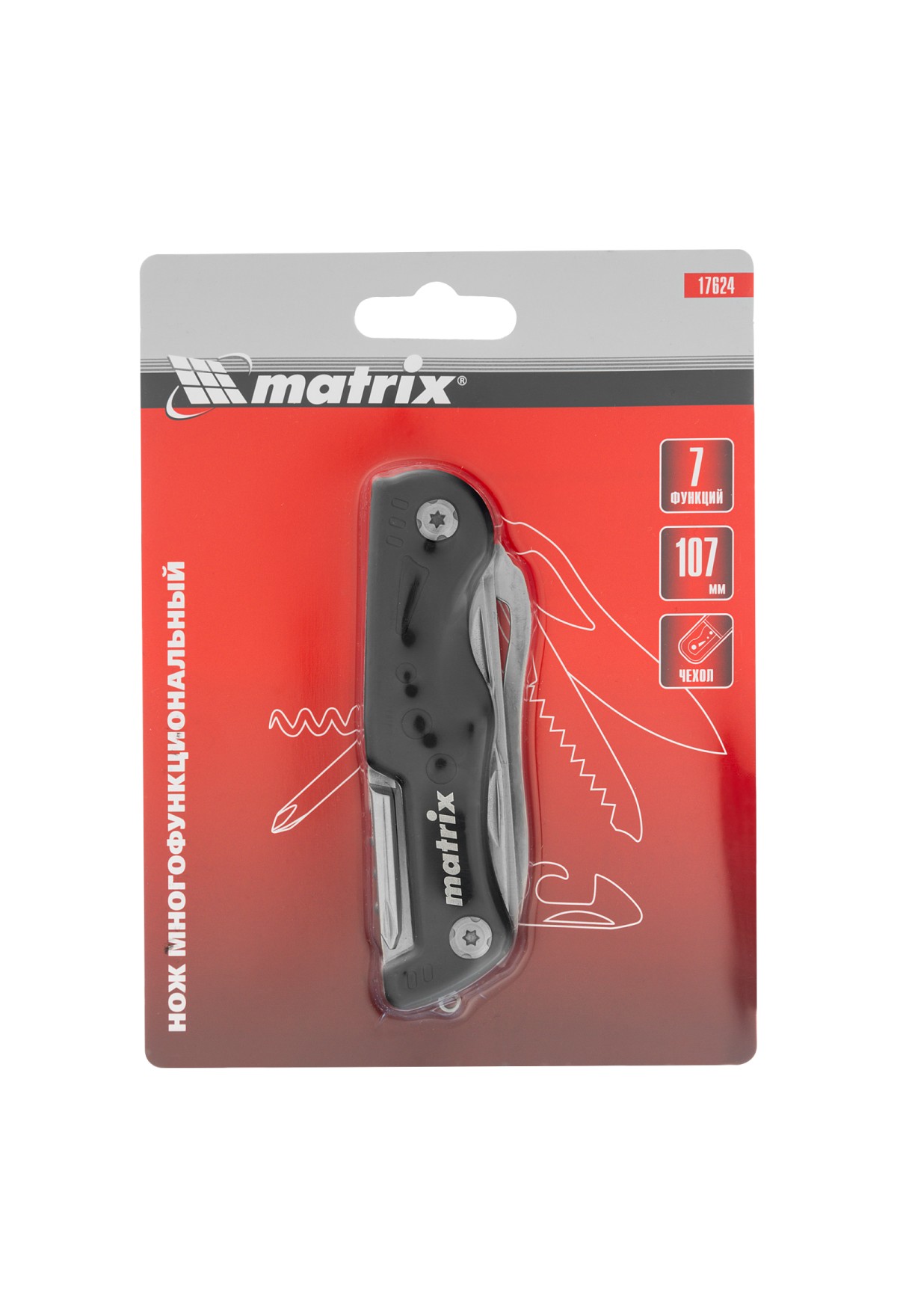 Технические характеристики Нож многофункциональный, 7 функций, в чехле, 107 мм Matrix