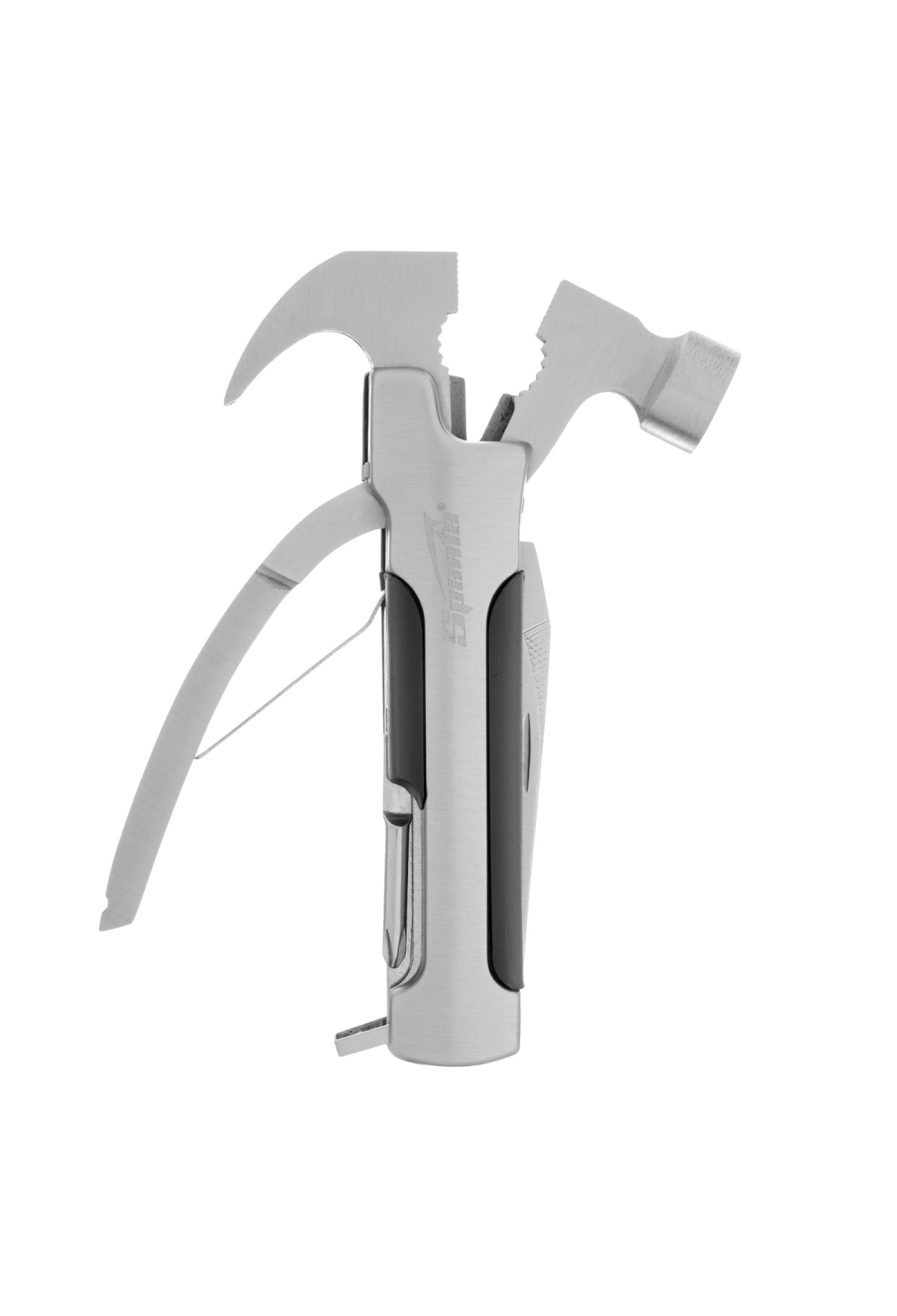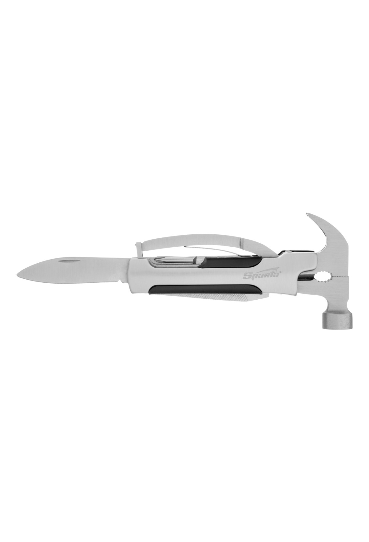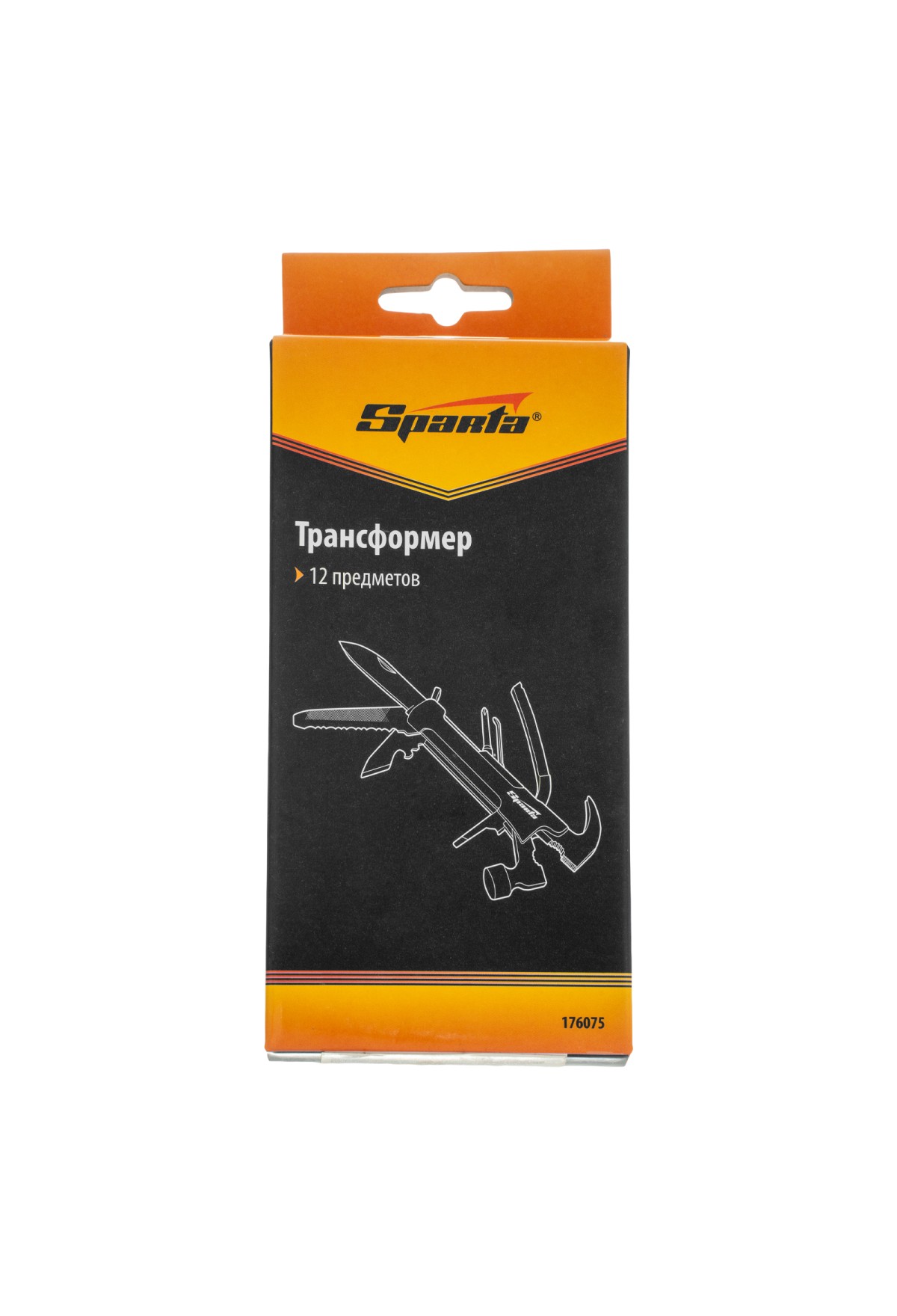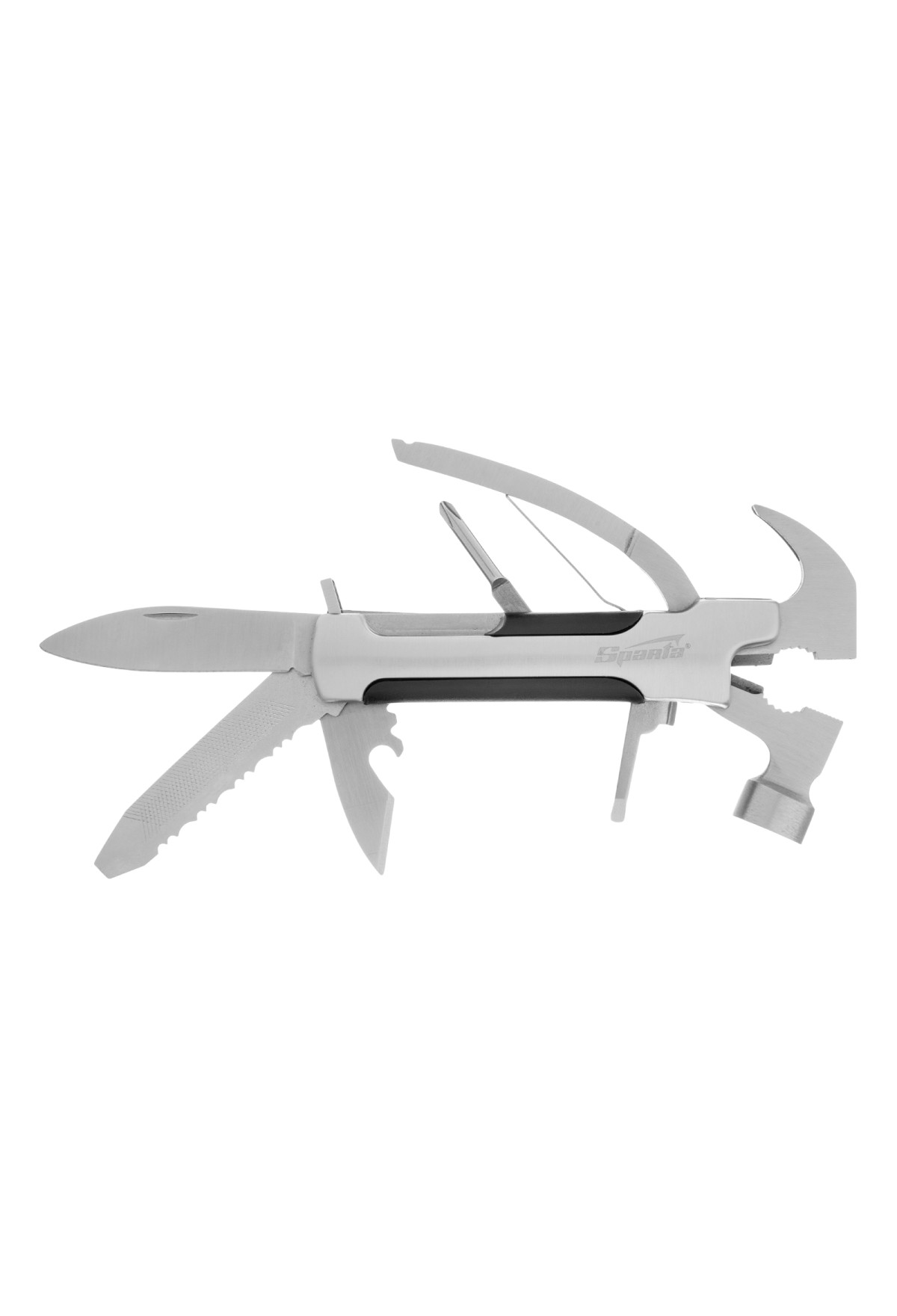 Трансформер Sparta 176075 выполняет 12 функций и включает в себя предметы, необходимые дома, на даче, рыбалке или охоте, а также в походе или поездке. Ножом можно разрезать веревку или вскрыть упаковку, а консервным ножом-открывалкой — открыть банку или бутылку. Молоток-гвоздодер пригодится для забивания и выпрямления гвоздей, а отвертки — для работы с резьбовым крепежом.