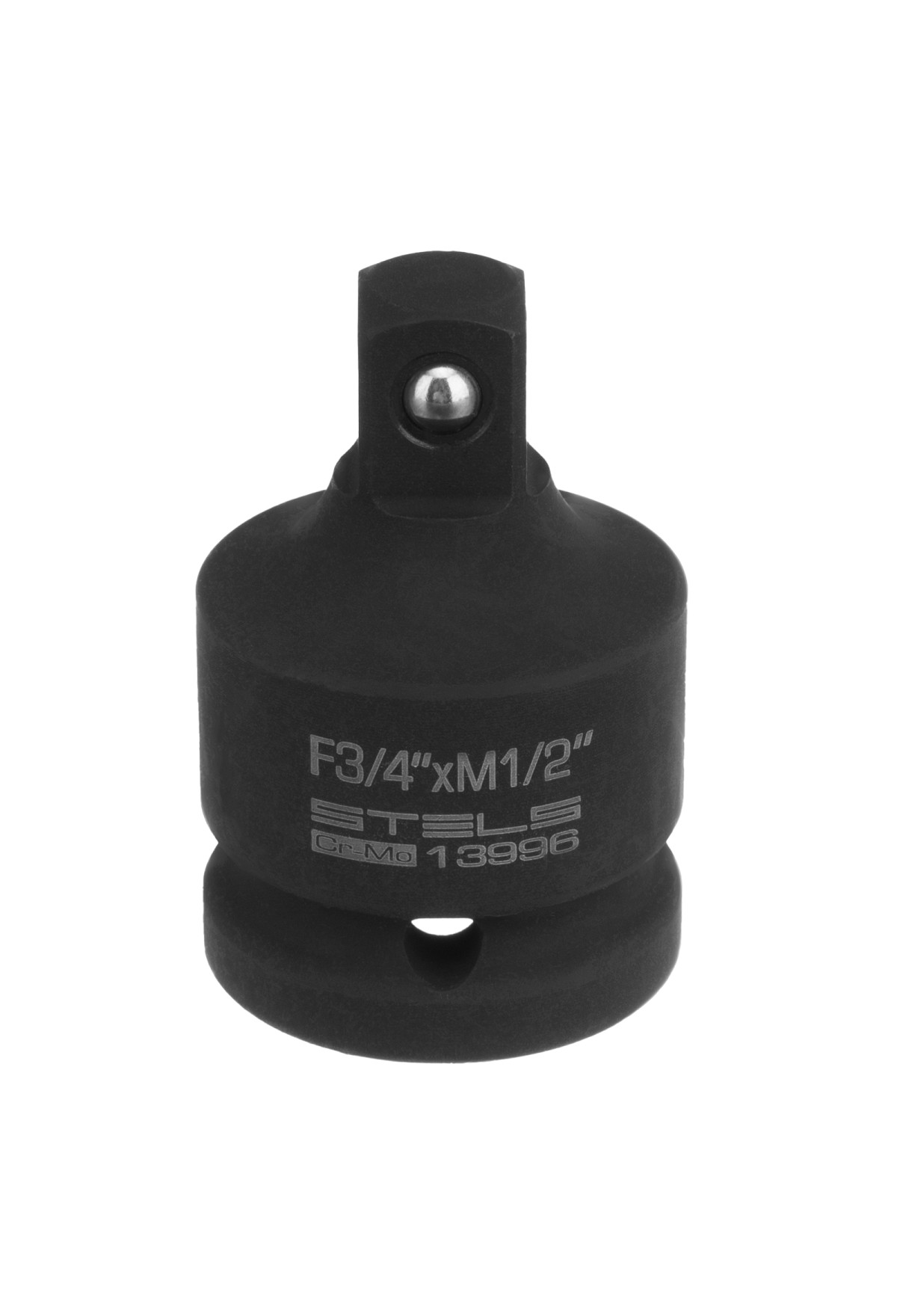 Ударный переходник Stels 13996 с присоединительным квадратом М1/2 и размером посадки на инструмент F3/4 используется совместно с гайковертами для работы с торцевыми головками. Легко выдерживает ударные нагрузки и позволяет осуществлять работы в труднодоступных местах.