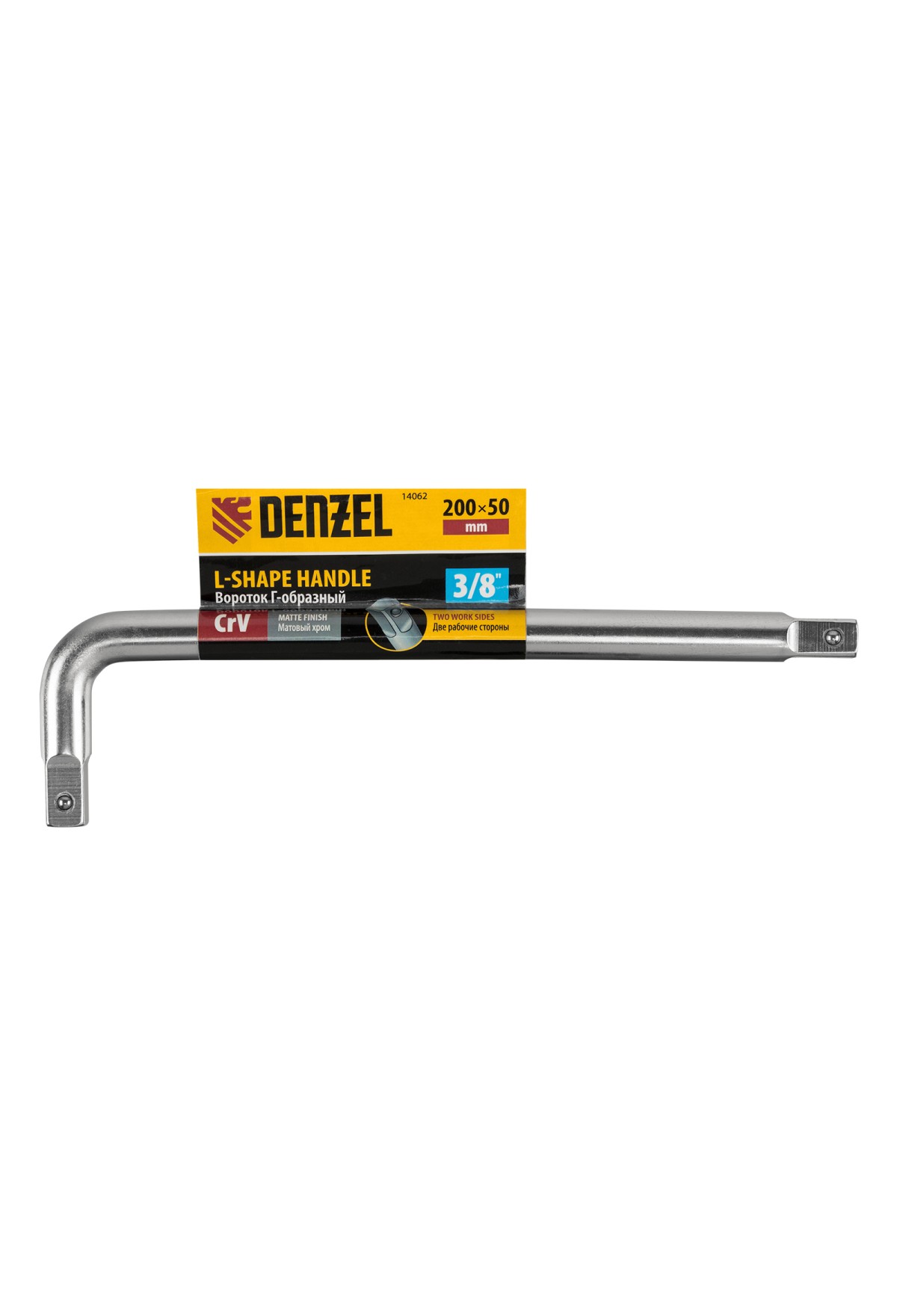 Вороток Г-образный, 200*50 мм, квадрат 3/8", CrV, матовый хром Denzel