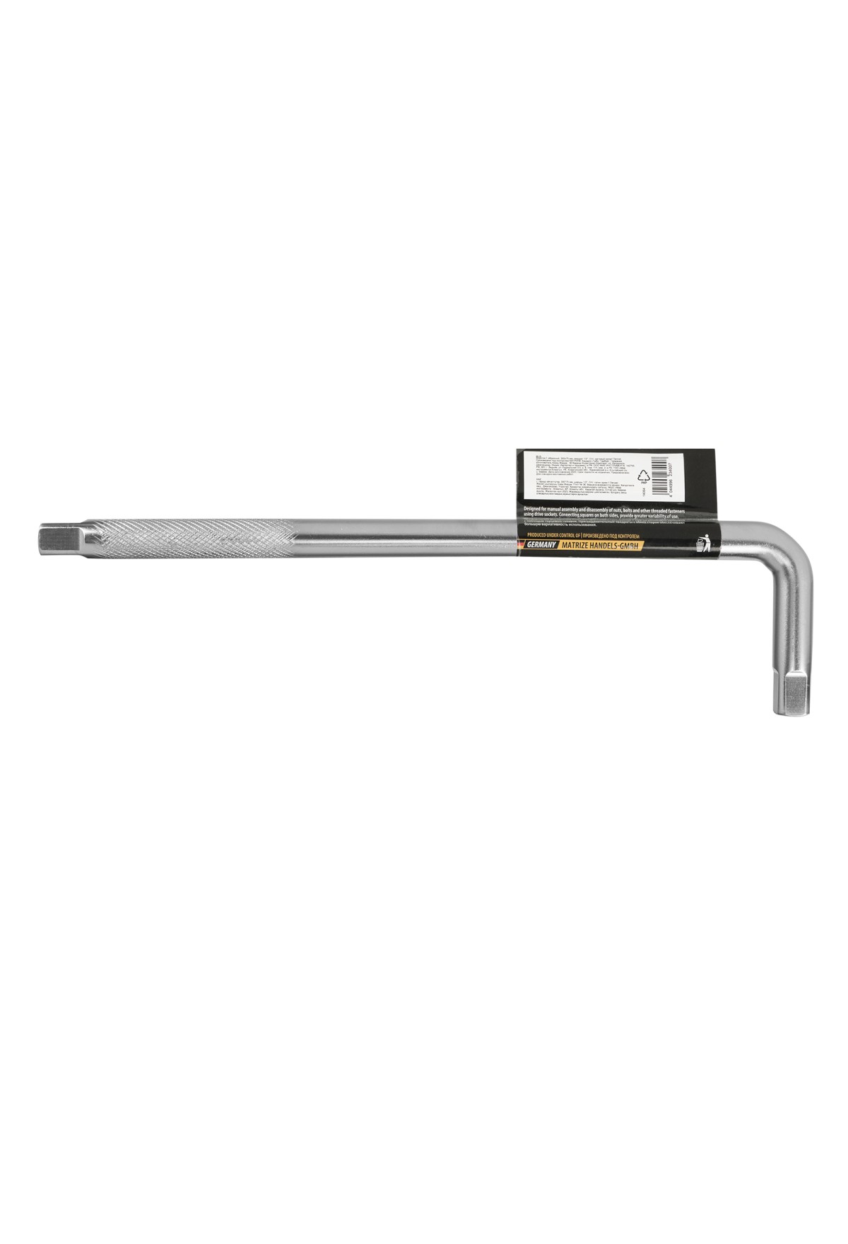 Технические характеристики Вороток Г-образный, 300*75 мм, квадрат 1/2", CrV, матовый хром Denzel