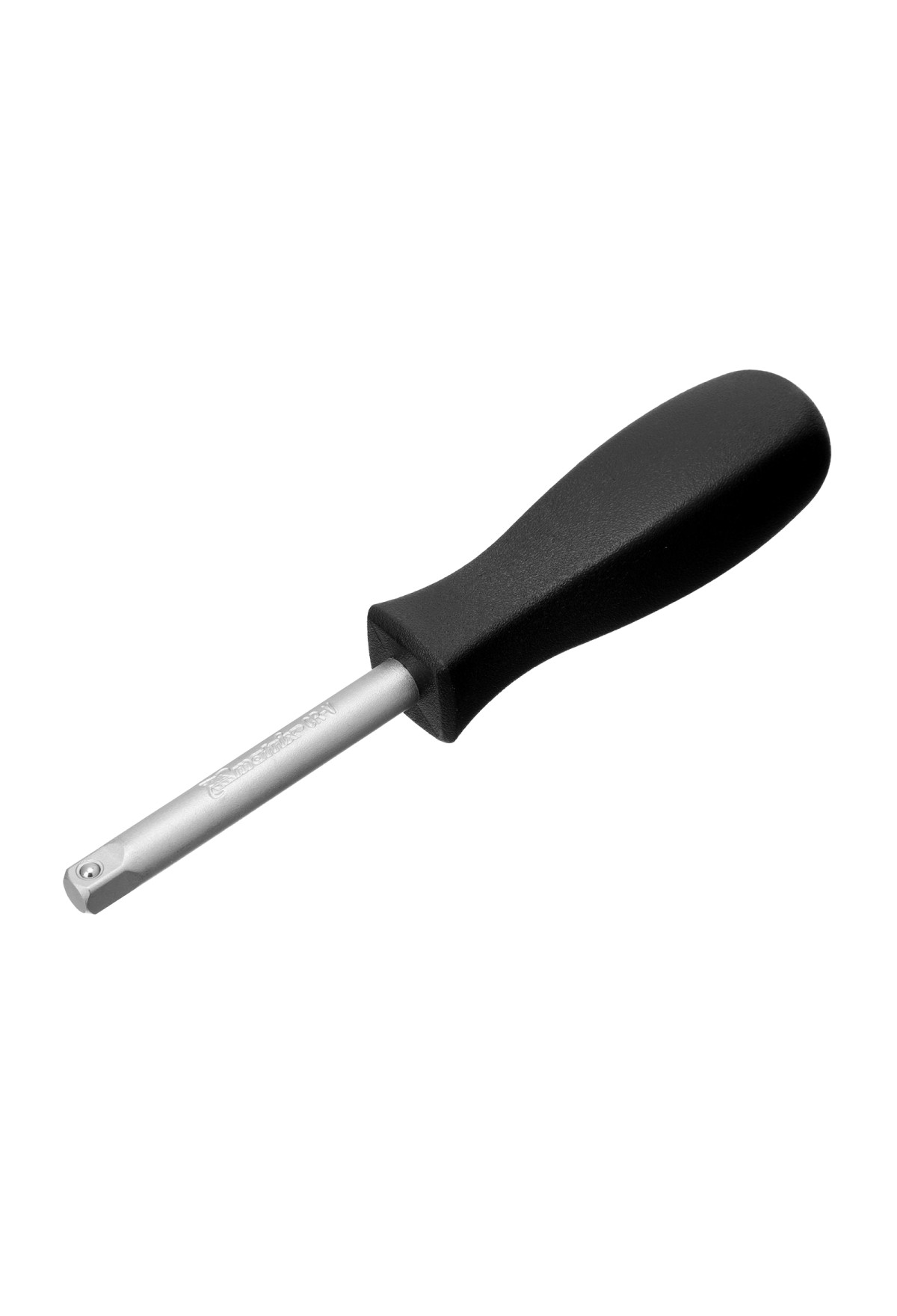 - Надежность — рукоятка изготовлена из ударопрочного пластика, а сам вороток из хромованадиевой стали, поэтому он не сломается при сильных нагрузках.