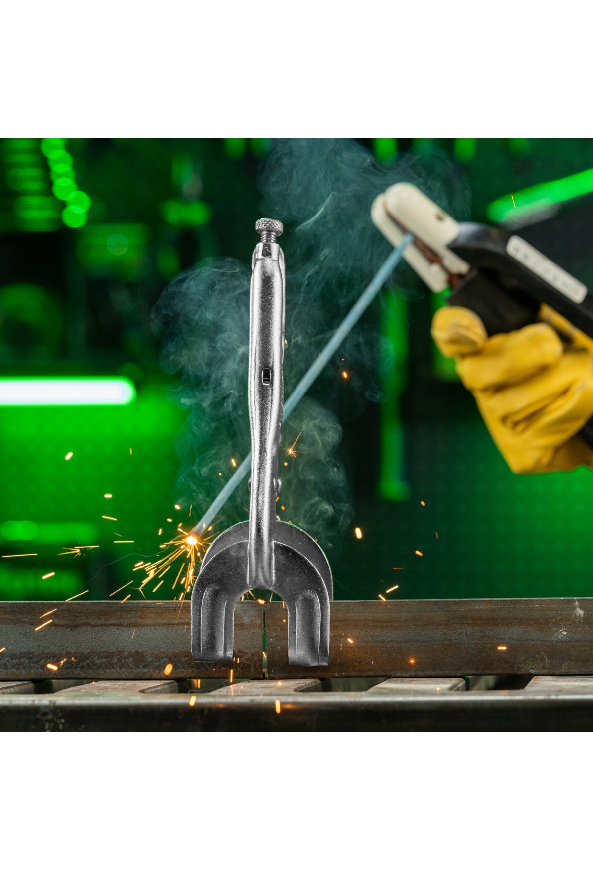 Двойной ручной зажим Сибртех 18429 длиной 225 мм используется для точечной фиксации деталей различной формы. Необходим во время проведения сварочных и слесарно-монтажных работ. Форма губок позволяет зажимать заготовки в двух точках одновременно, а запирающий механизм не дает им раскрыться.