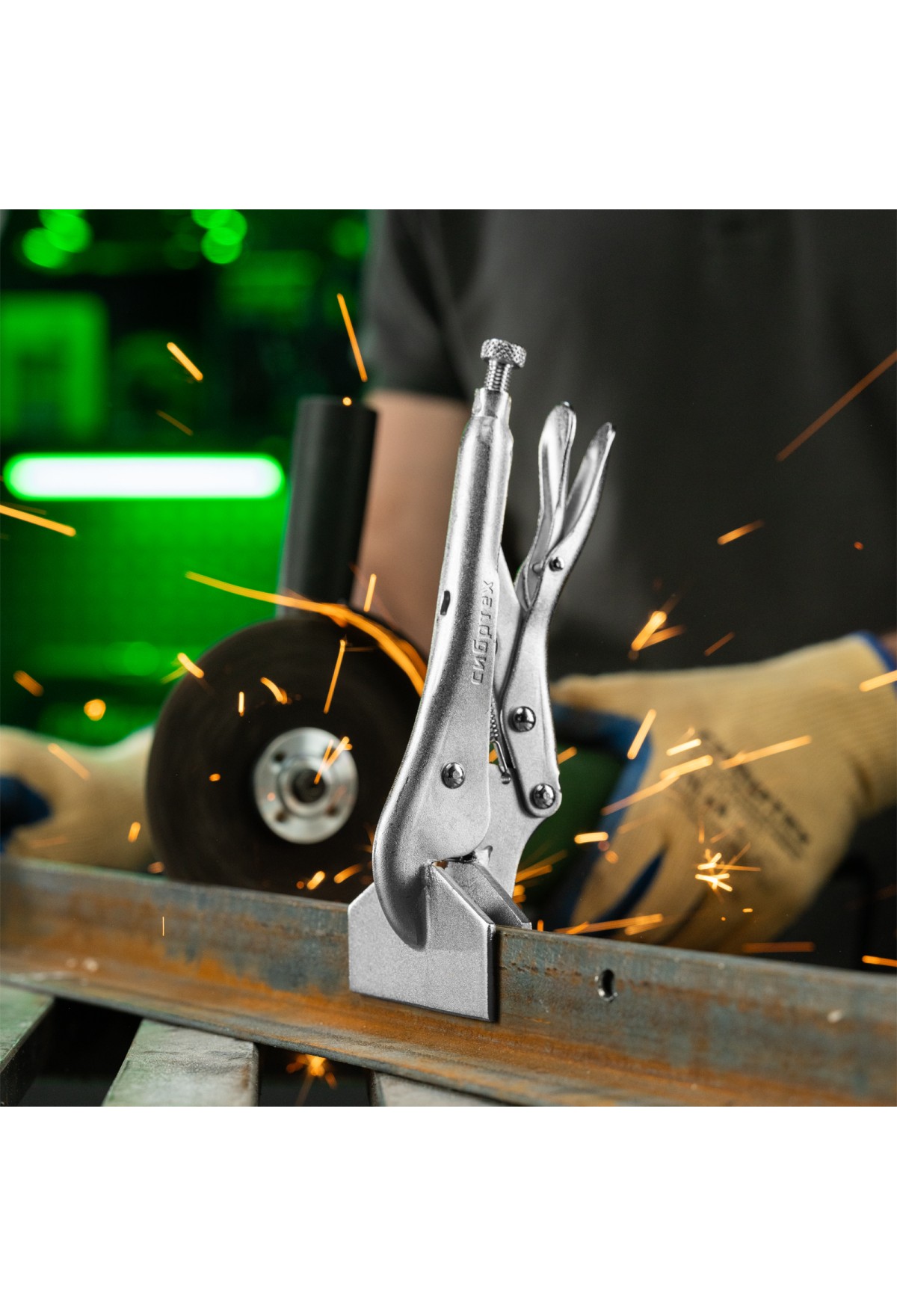 Зажим ручной Сибртех 18431 длиной 205 мм — слесарно-монтажный инструмент, предназначенный для фиксации и удержания заготовок. Имеет широкие плоские губки, поэтому эффективен при работе с листовыми материалами. Зажим используется в профессиональной и частной сфере.