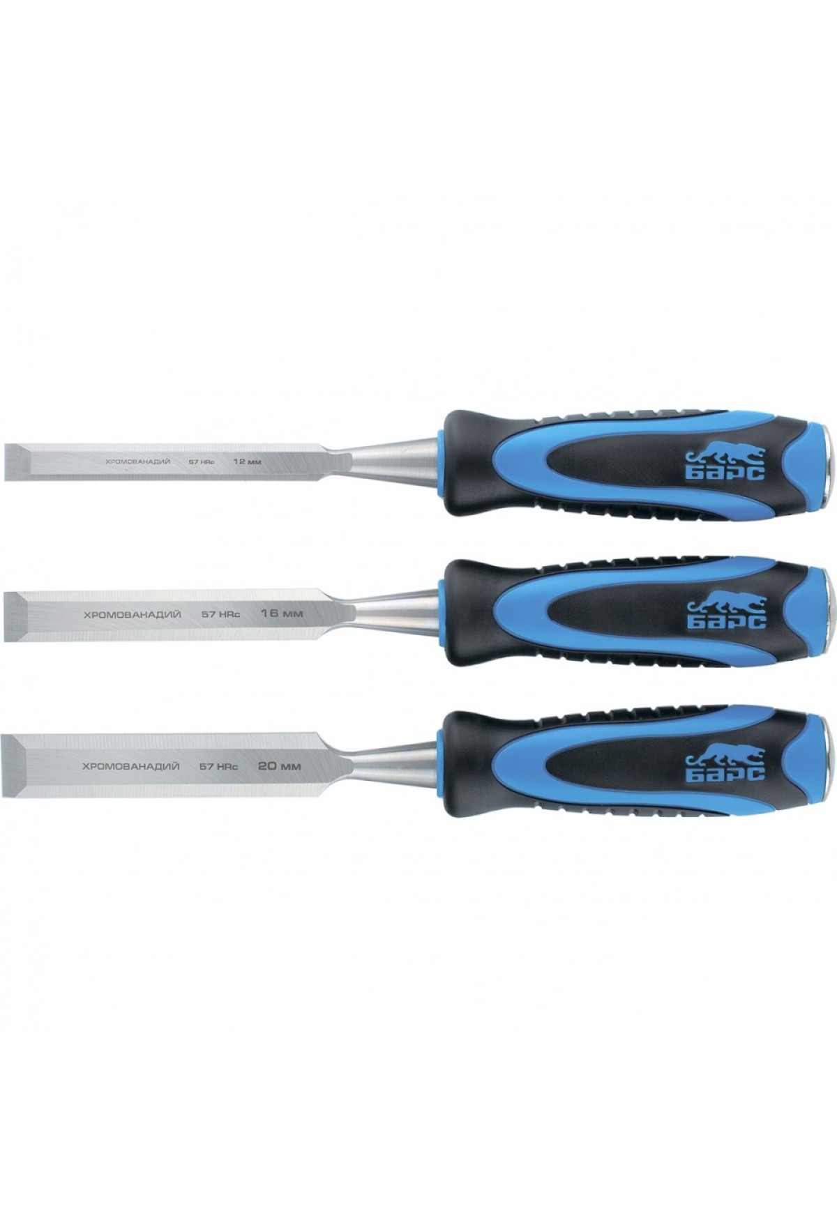 Технические характеристики Набор долот-стамесок плоских, 3 шт, 12-16-20 мм, двухкомпонентная рукоятка, металлический затыльник Барс