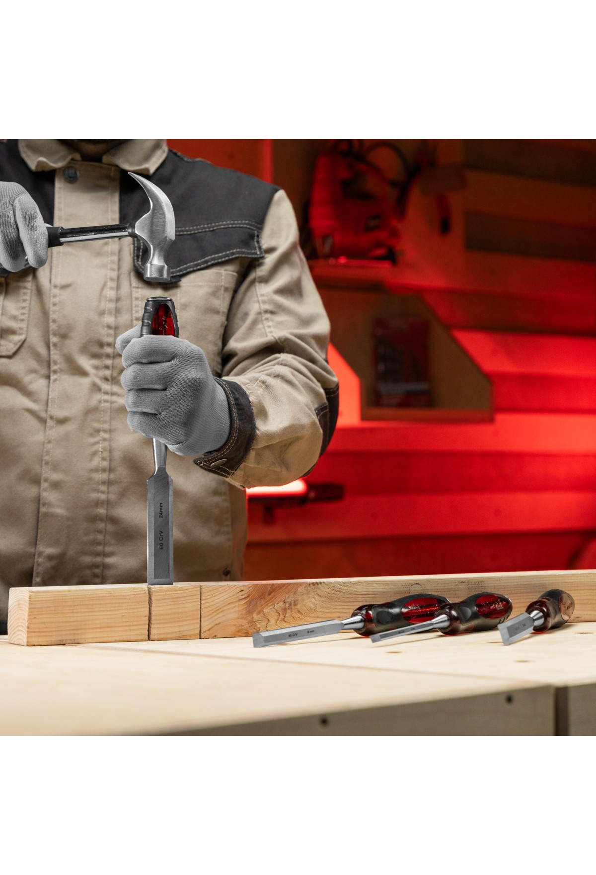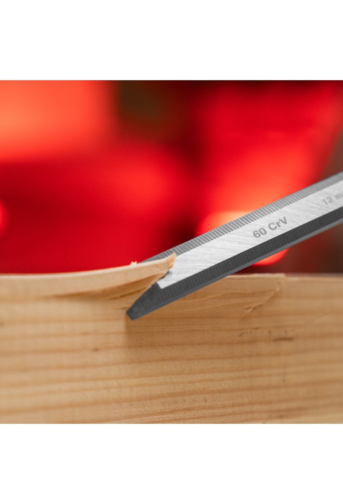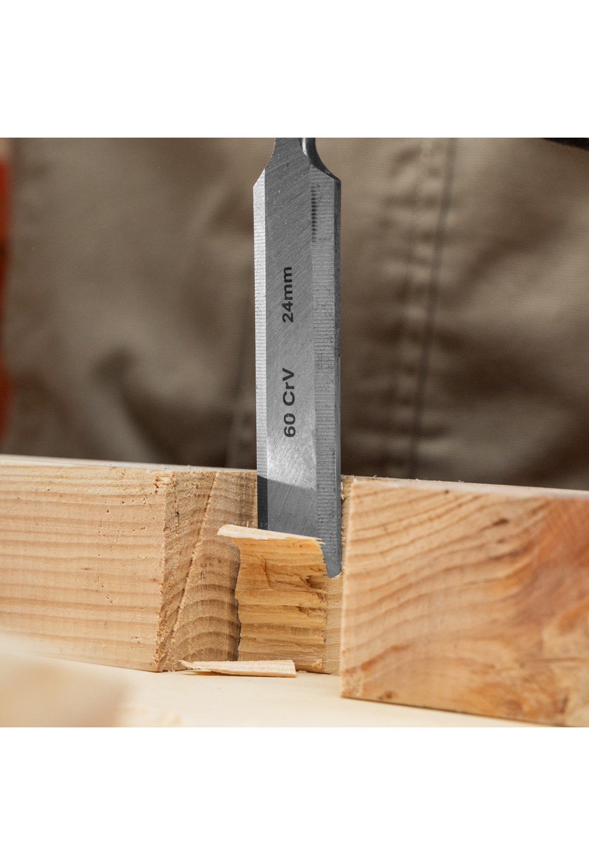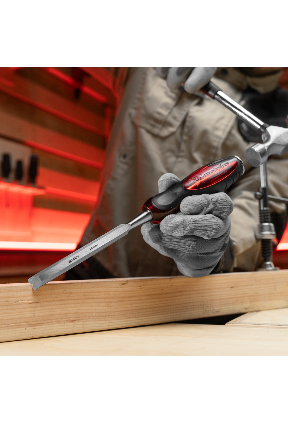 - Повышенная прочность — стамески из инструментальной легированной стали CrV имеют сквозной металлический стержень и легко выдерживают ударные нагрузки.