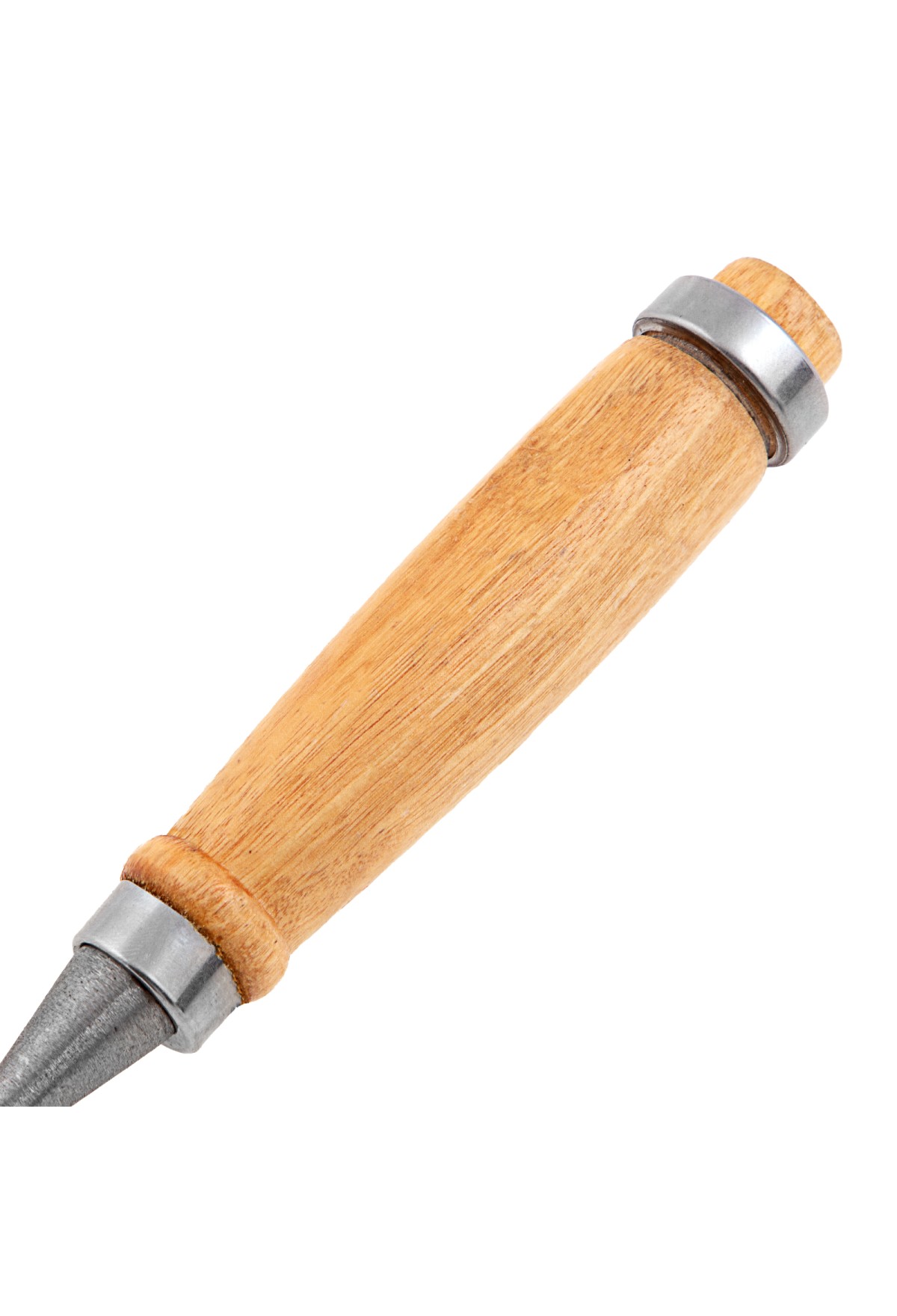 Плоское долото-стамеска 6 мм с деревянной рукояткой предназначено для столярных и плотничных работ- выборка и зачистка небольших прямоугольных пазов, снятия фасок в натуральной древесине любой твердости.Полотно стамески выполнено из конструкционной стали 45 и острозаточена. Твердость инструмента на длине 0,7 рабочей части полотна составляет 45-55 HRC. Рукоятка имеет защитное лакокрасочное покрытие и оборудована металлическим кольцом с тыльной стороны, которое предотвращает раскол дерева при ударах молотком или киянкой.