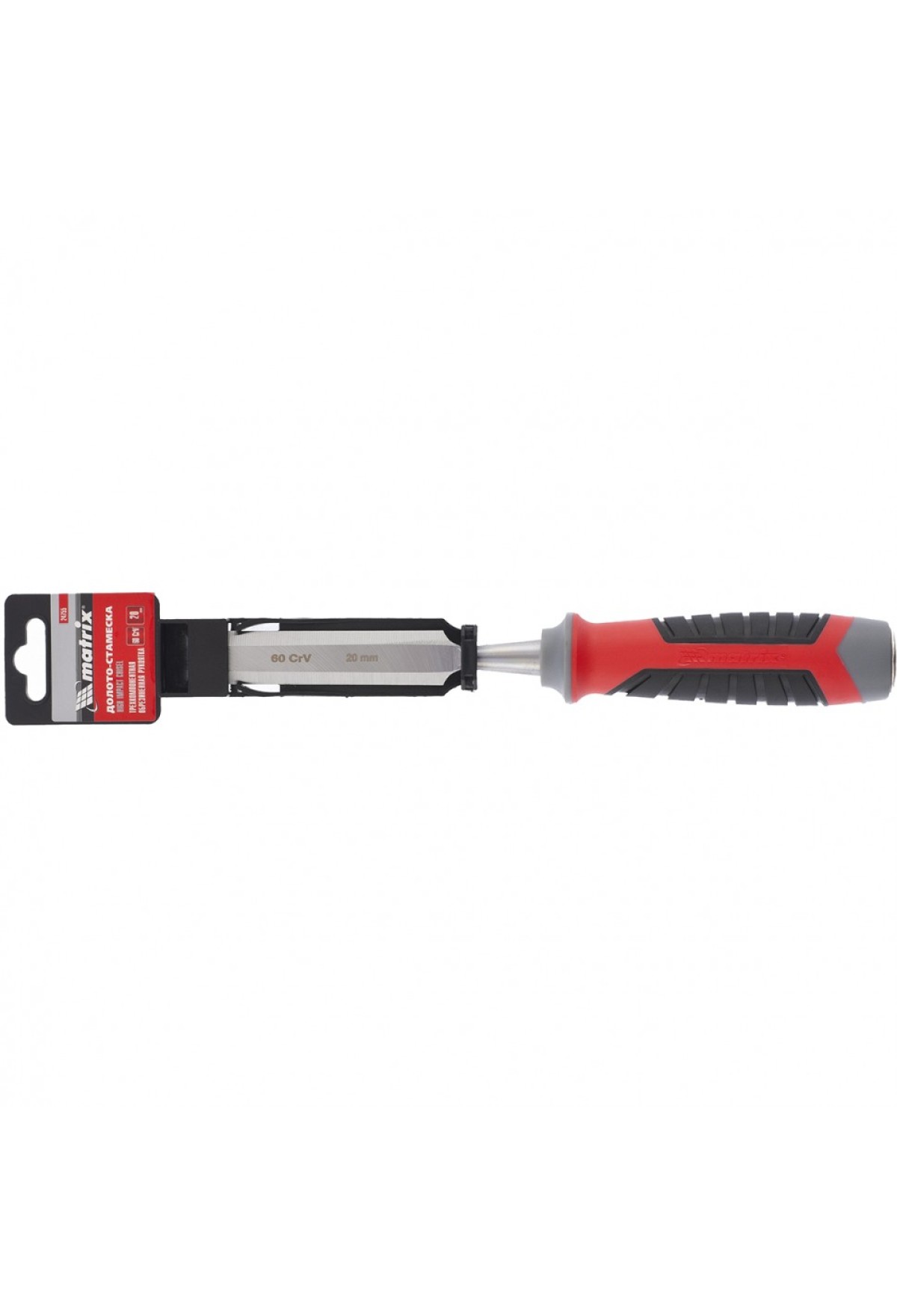 Нет в наличии Код товара: VR6-24753 Долото-стамеска, 18 мм, 60 CrV, трехкомпонентная обрезиненная рукоятка Matrix