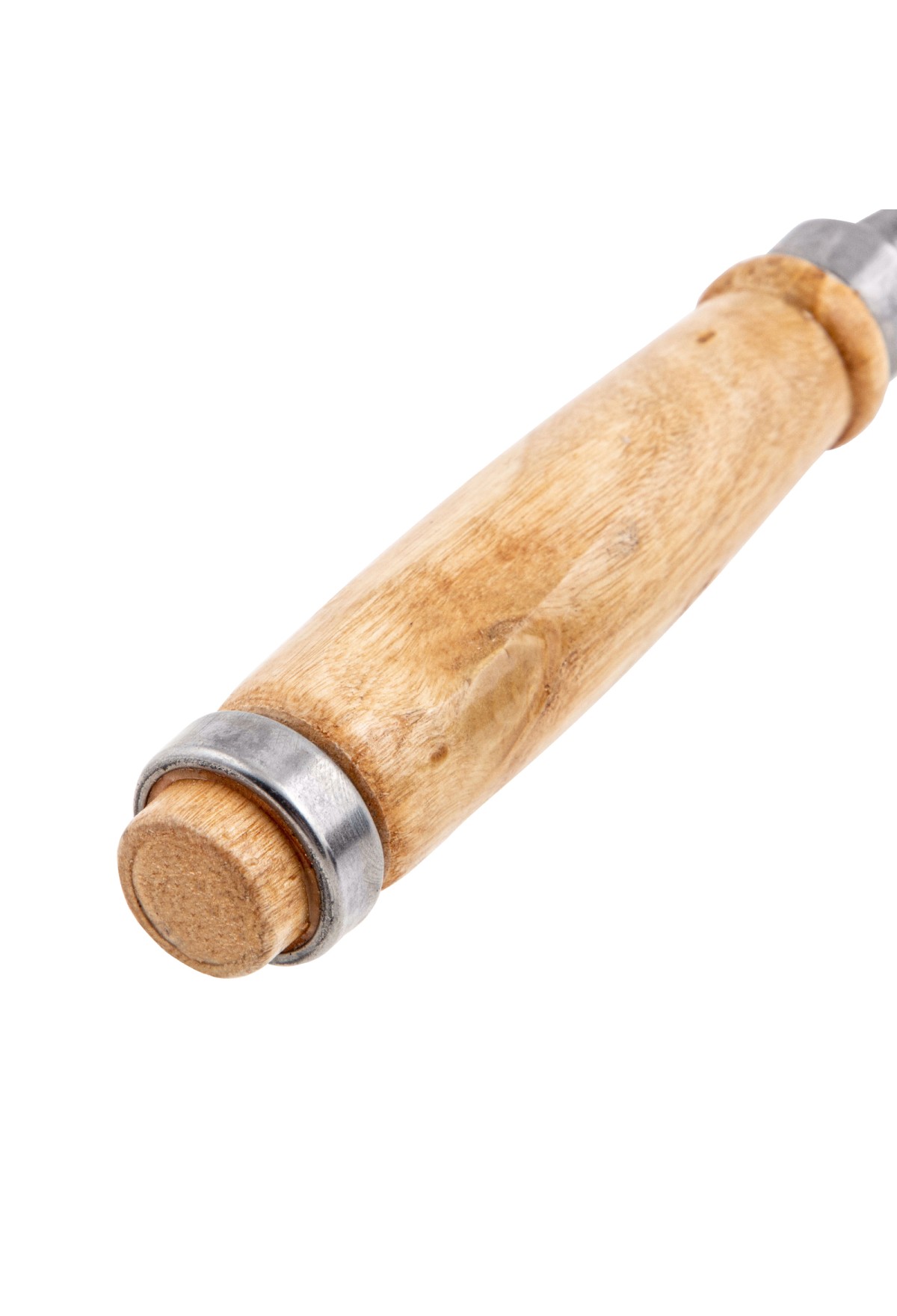 Плоское долото-стамеска 6 мм с деревянной рукояткой предназначено для столярных и плотничных работ- выборка и зачистка небольших прямоугольных пазов, снятия фасок в натуральной древесине любой твердости.Полотно стамески выполнено из конструкционной стали 45 и острозаточена. Твердость инструмента на длине 0,7 рабочей части полотна составляет 45-55 HRC. Рукоятка имеет защитное лакокрасочное покрытие и оборудована металлическим кольцом с тыльной стороны, которое предотвращает раскол дерева при ударах молотком или киянкой.