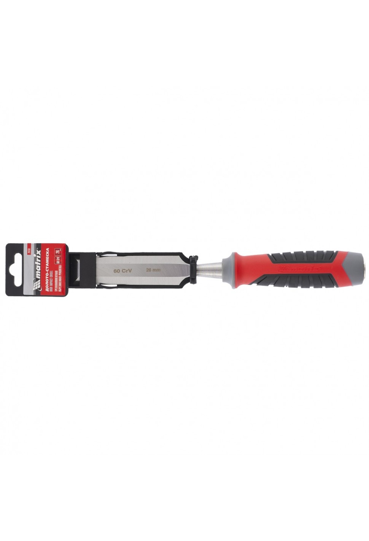 Долото-стамеска Matrix 24761 из стали 60 CrV, с полотном шириной 26 мм и трехкомпонентной обрезиненной рукояткой, используется в столярном и мебельном производстве. Позволяет выбрать углубления, снять фаски, зачистить пазы, создать декоративную резьбу на деревянной поверхности. Благодаря металлическому затыльнику долото-стамеску можно использовать с ударным инструментом для лучшего врезания в дерево. Инструмент отличается высоким качеством исполнения и подходит для профессионального использования.